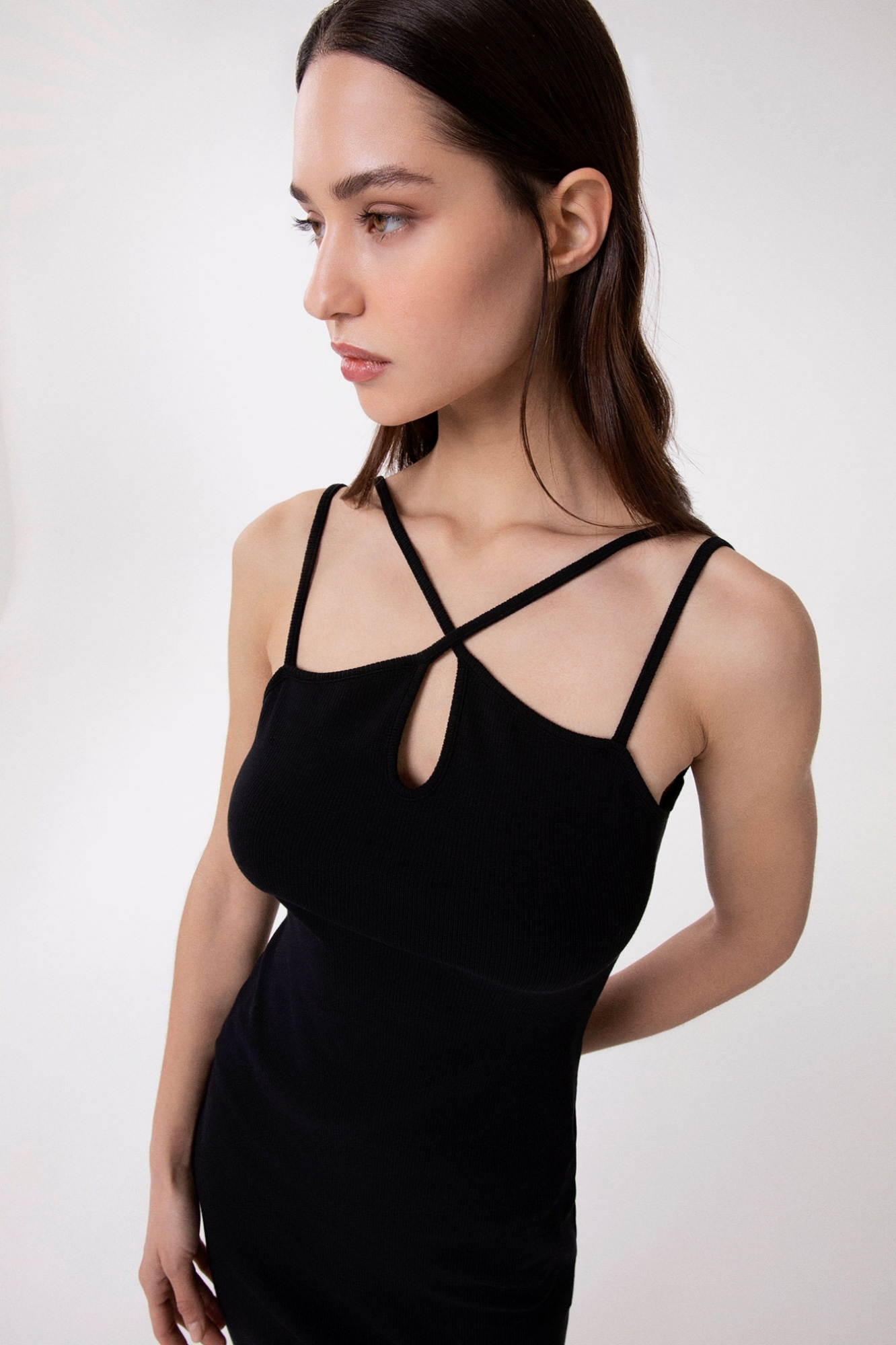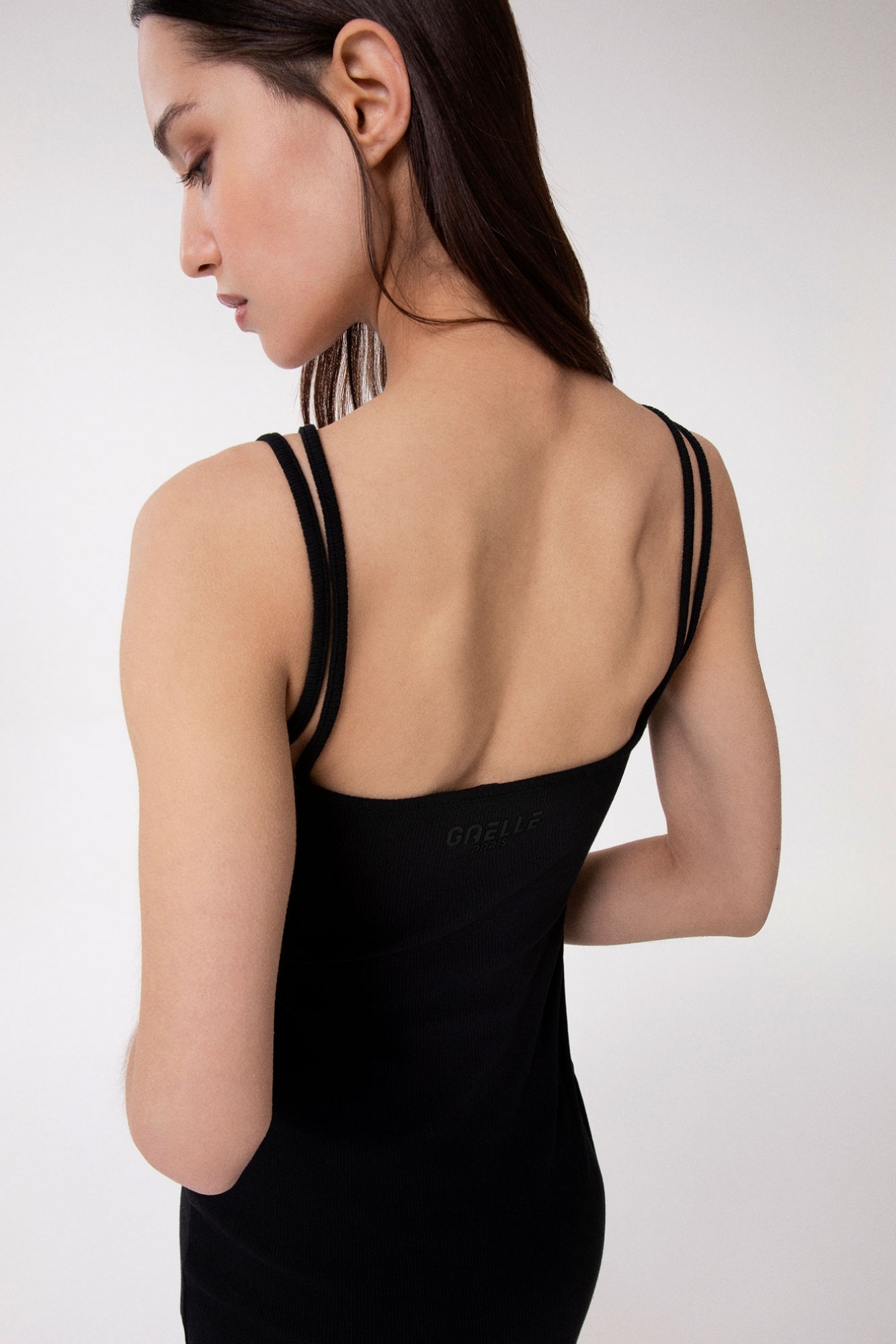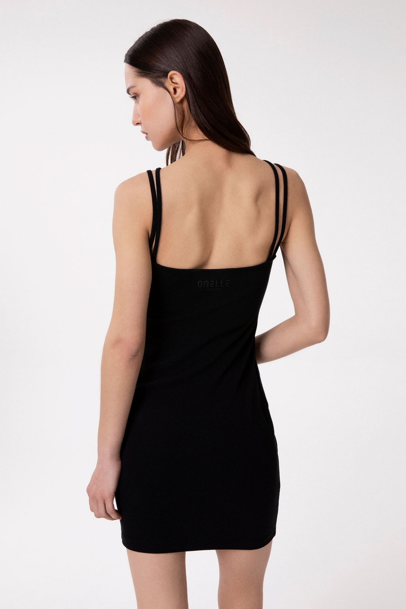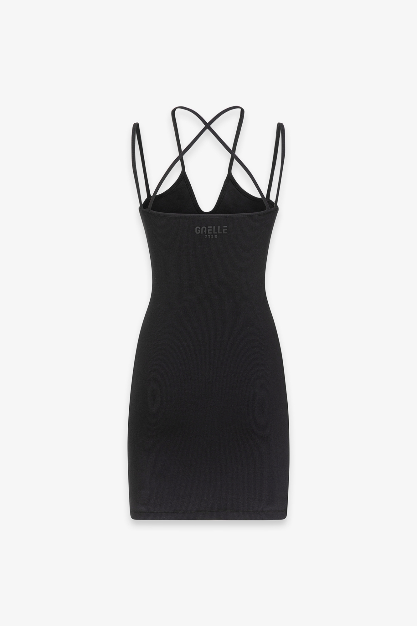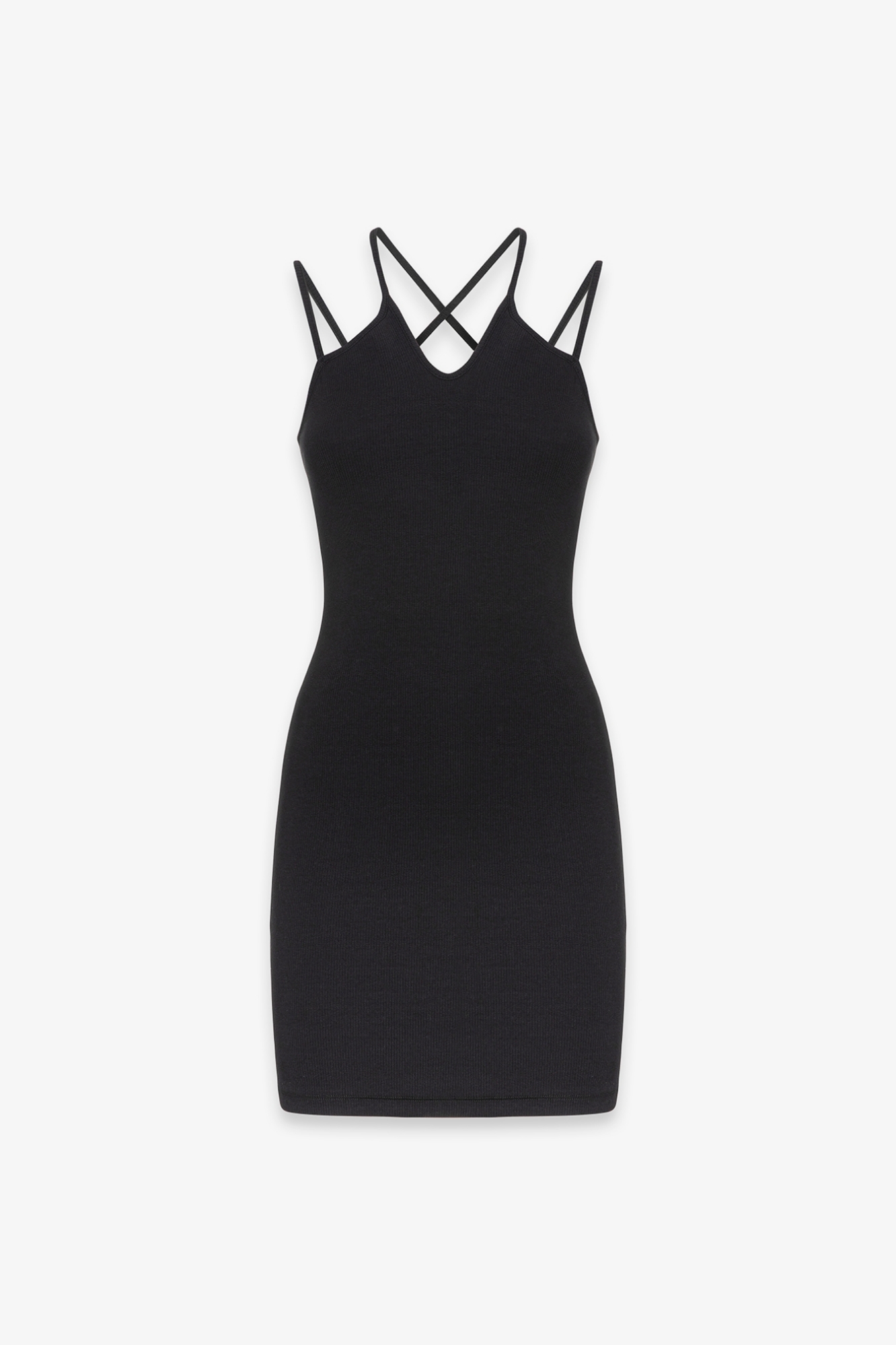 Short ribbed dress with thin straps and logo on the back