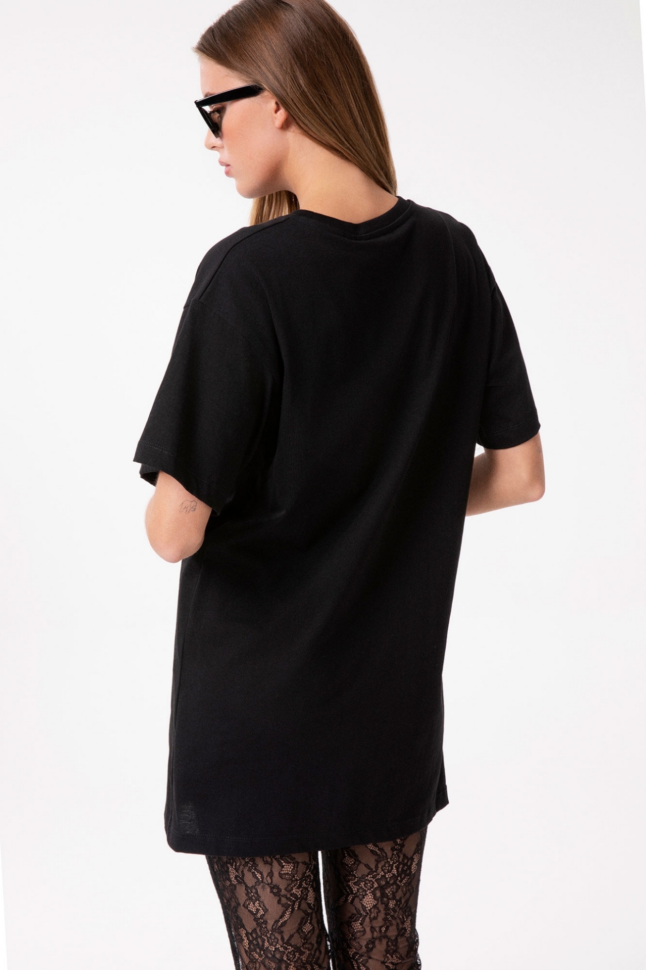 Short Crew Neck Dress with Half Sleeves and Embroidery