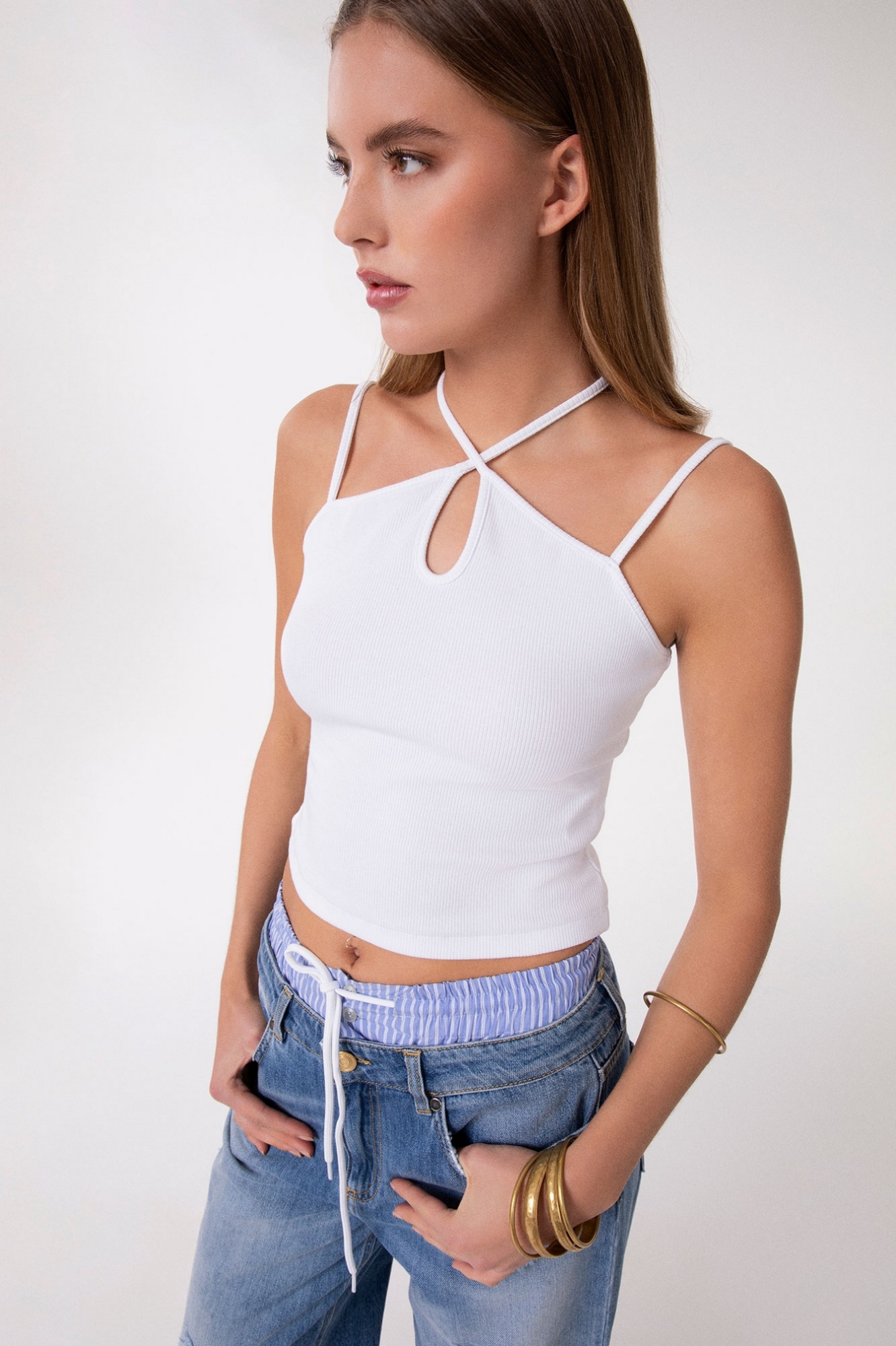 Ribbed Tank Top With Thin Shoulder Straps With Applique
