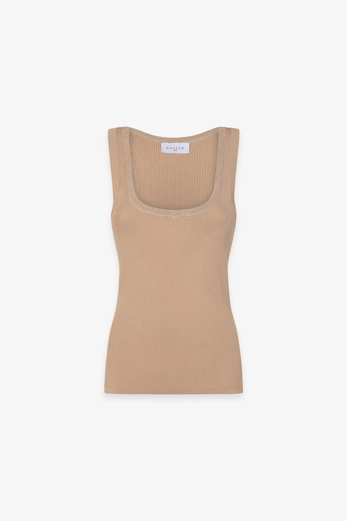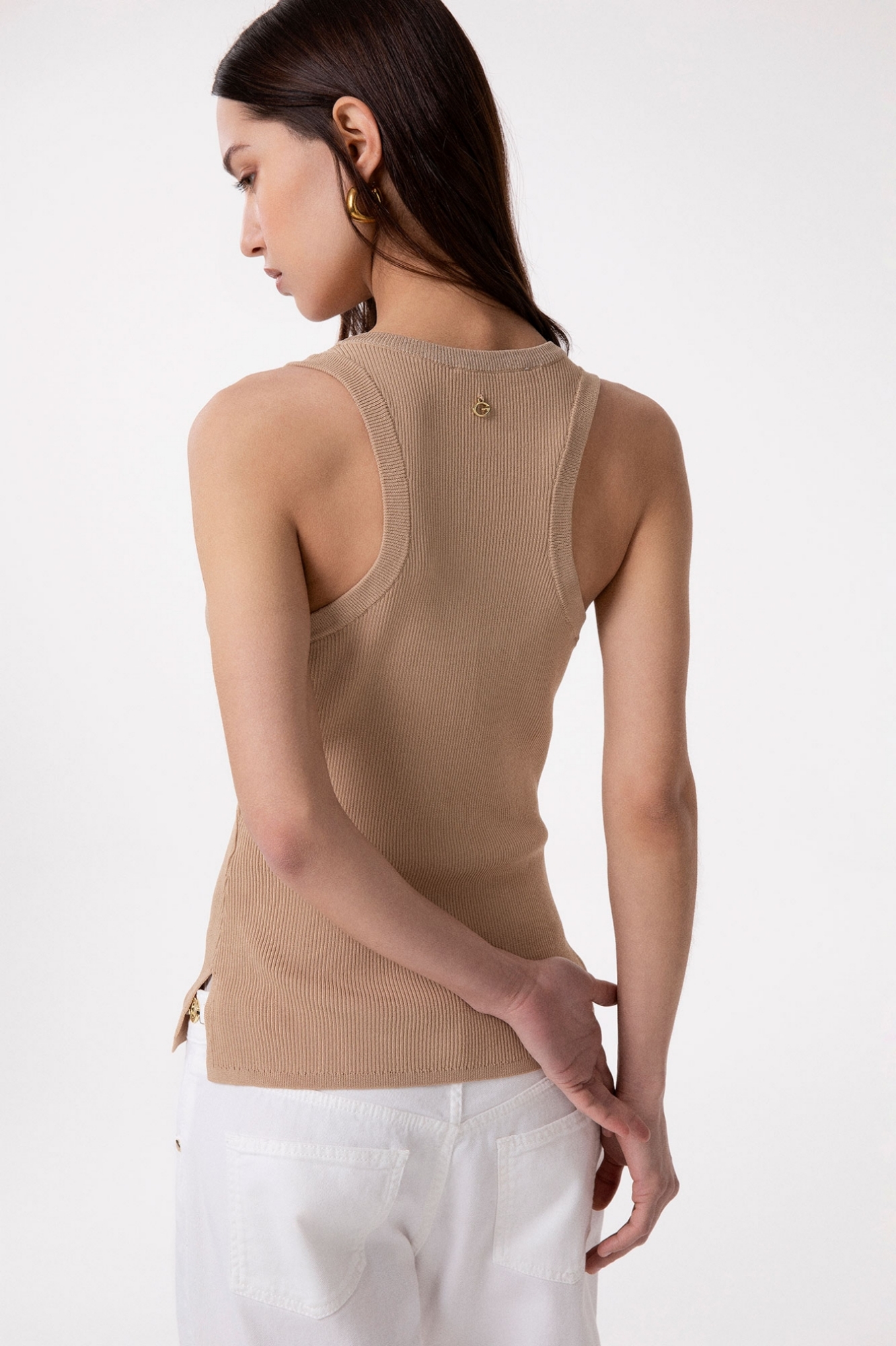 Knitted Tank Top with Lurex Trim and Racerback Neckline