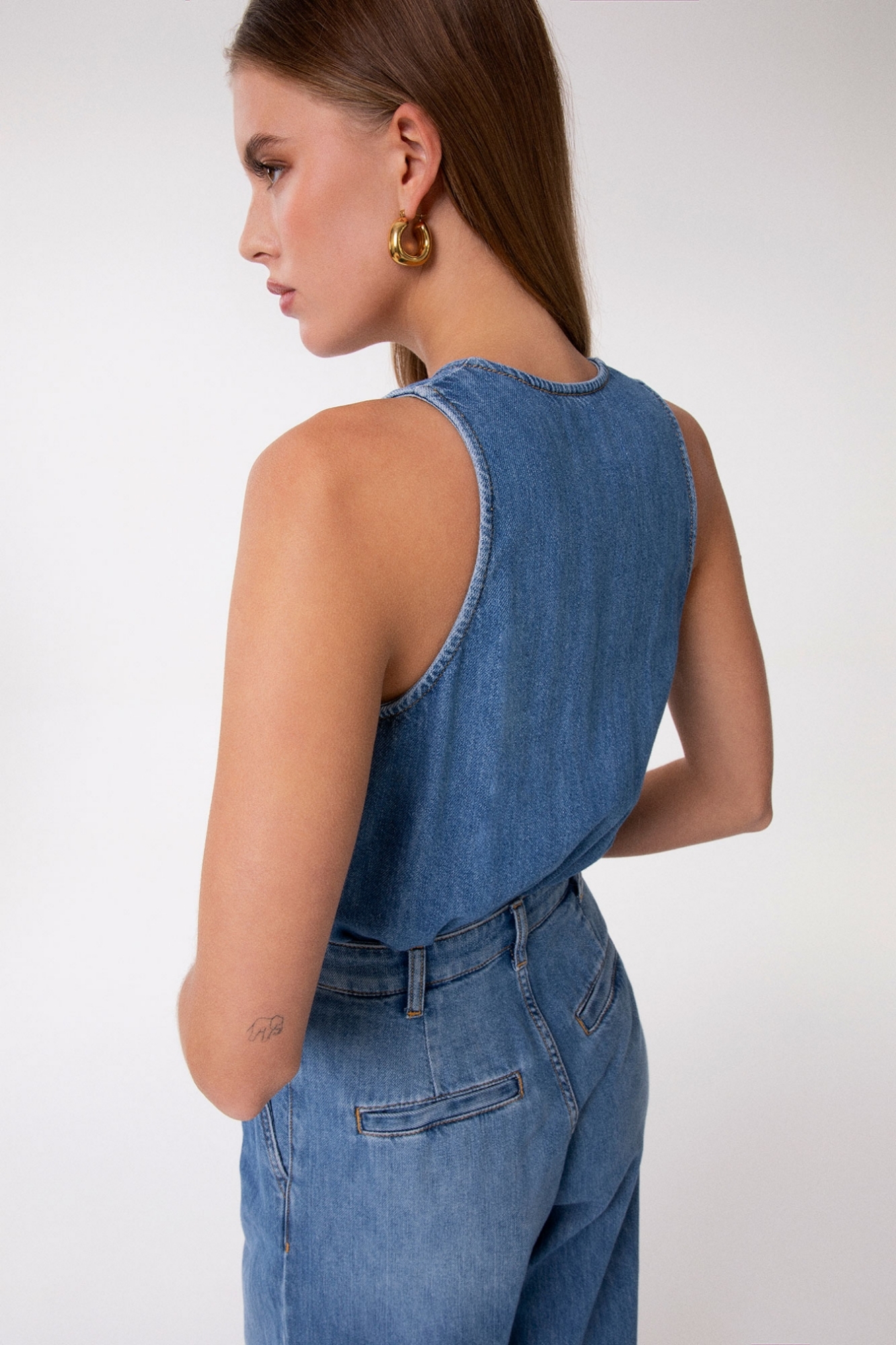 Denim Jumpsuit with Crossover Neckline