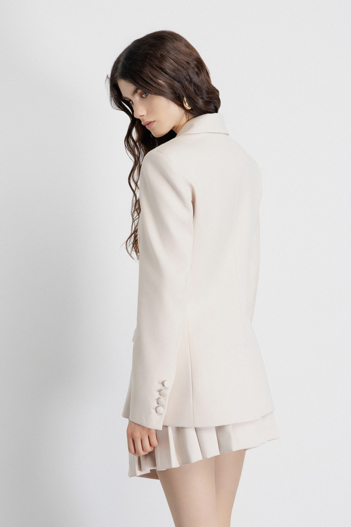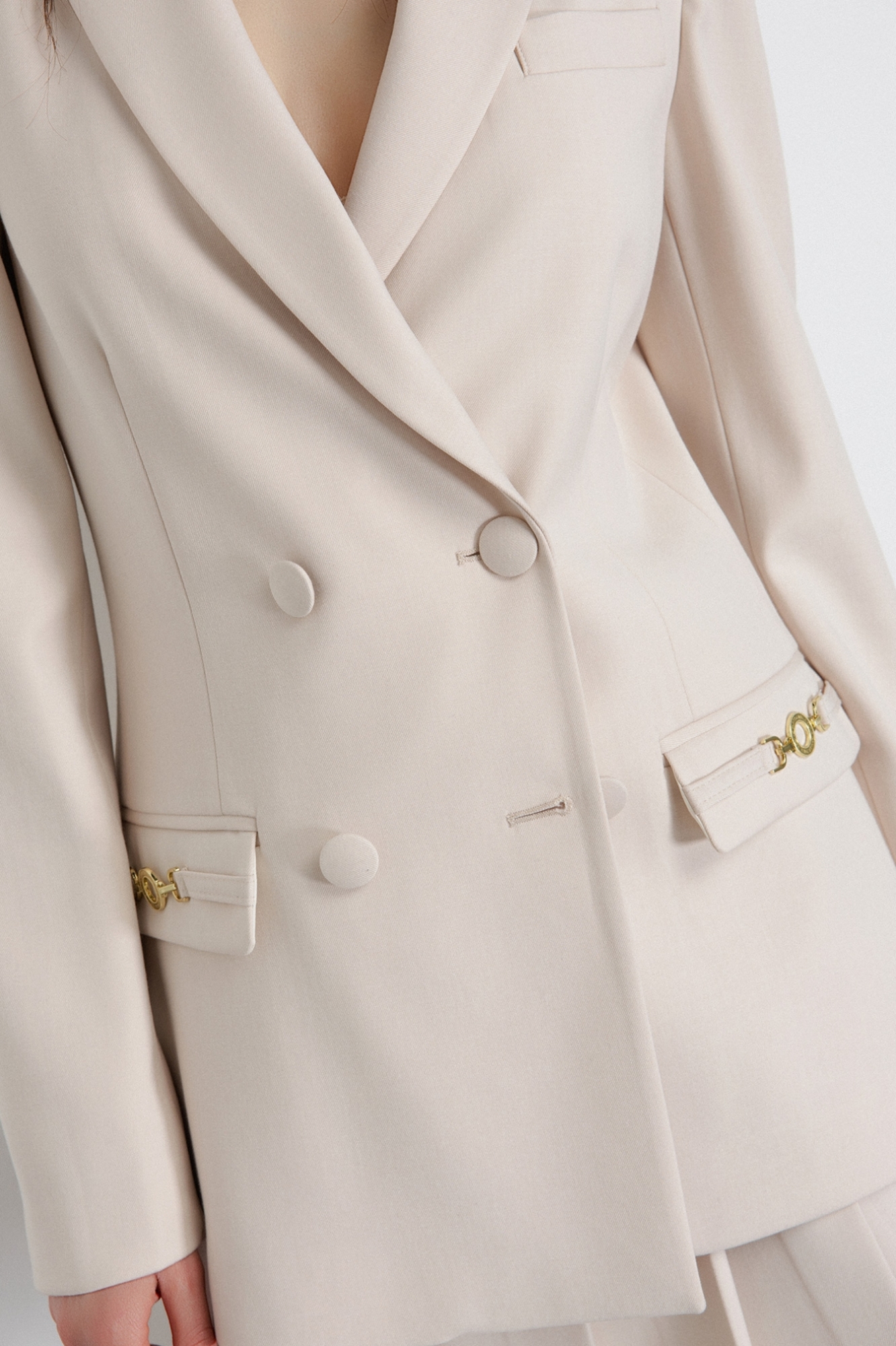 Double-breasted fitted jacket in Frescolana with clamp accessory