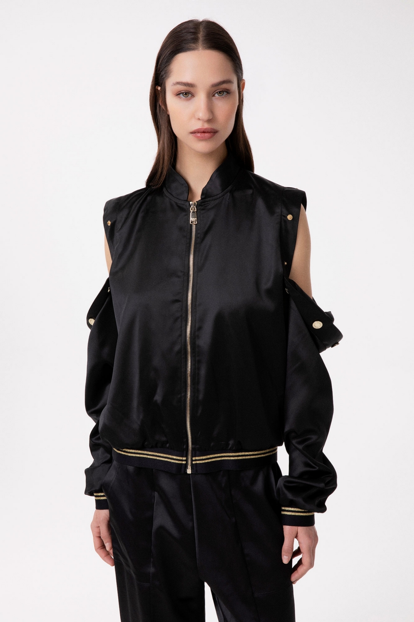 Satin Jacket With Buttons On The Sleeve Opening