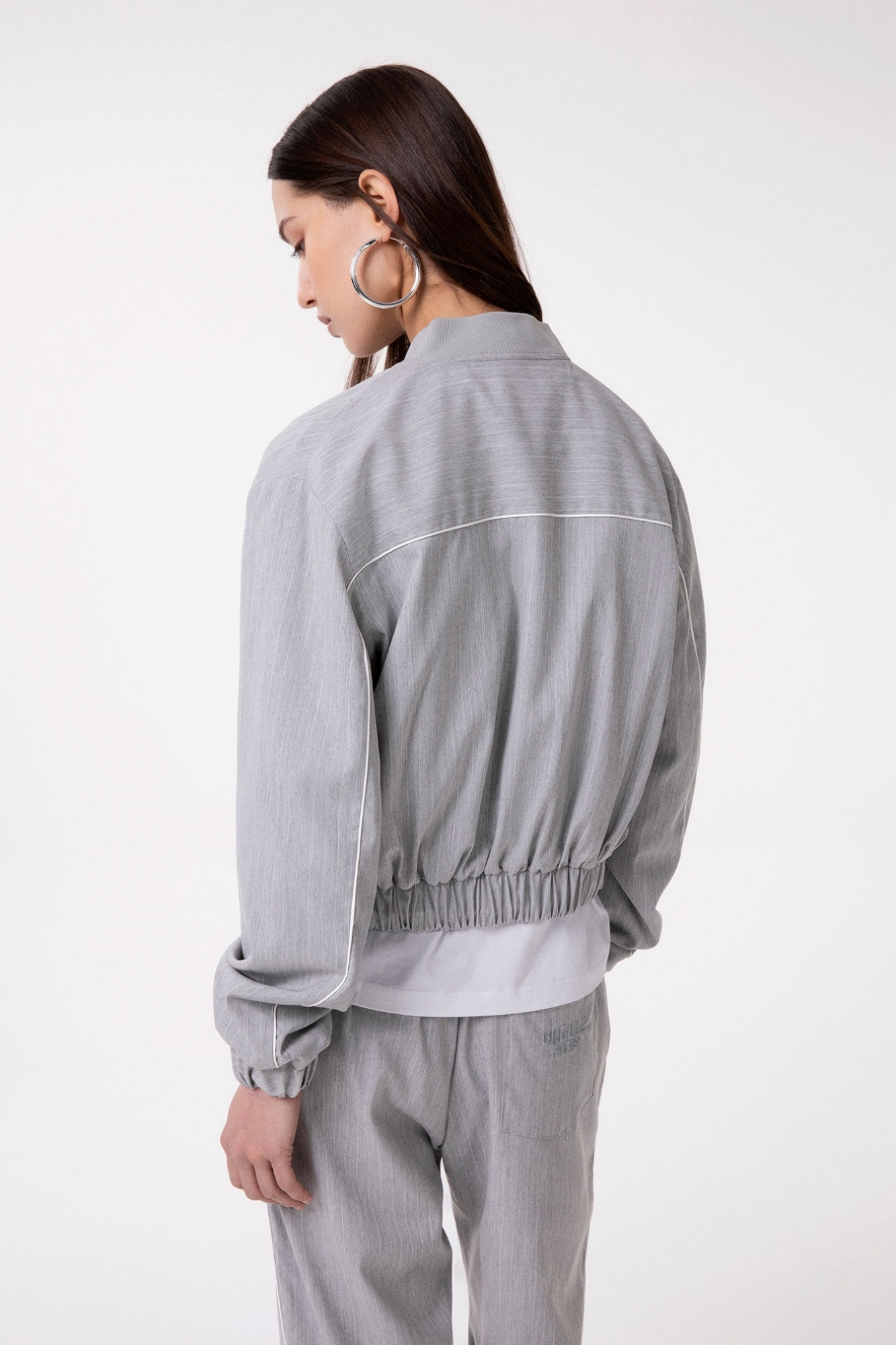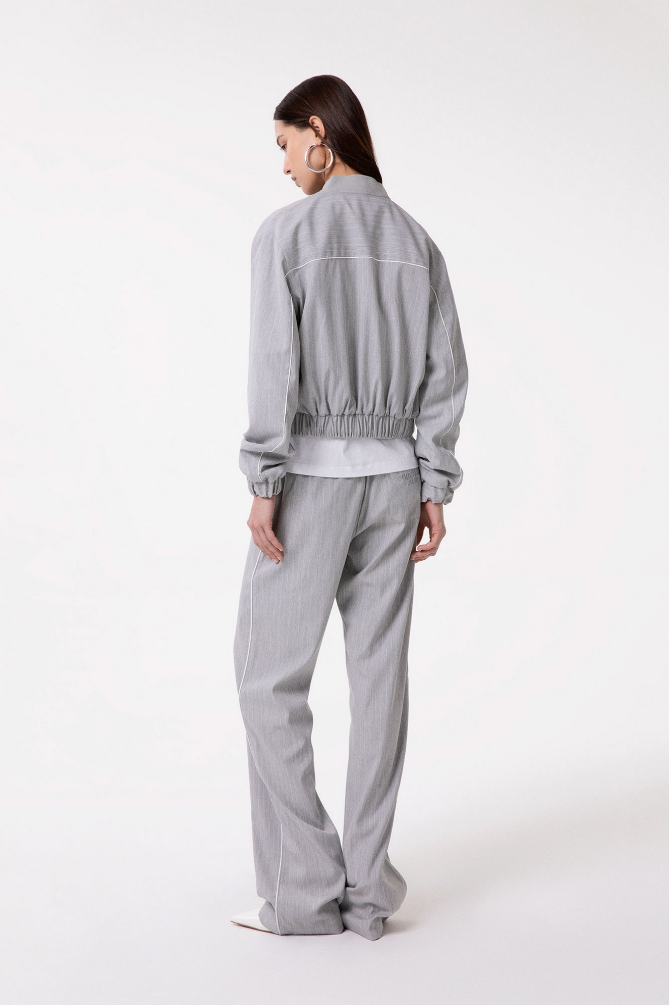 Zip-up jacket with shoulder pads in polyviscose pinstripe