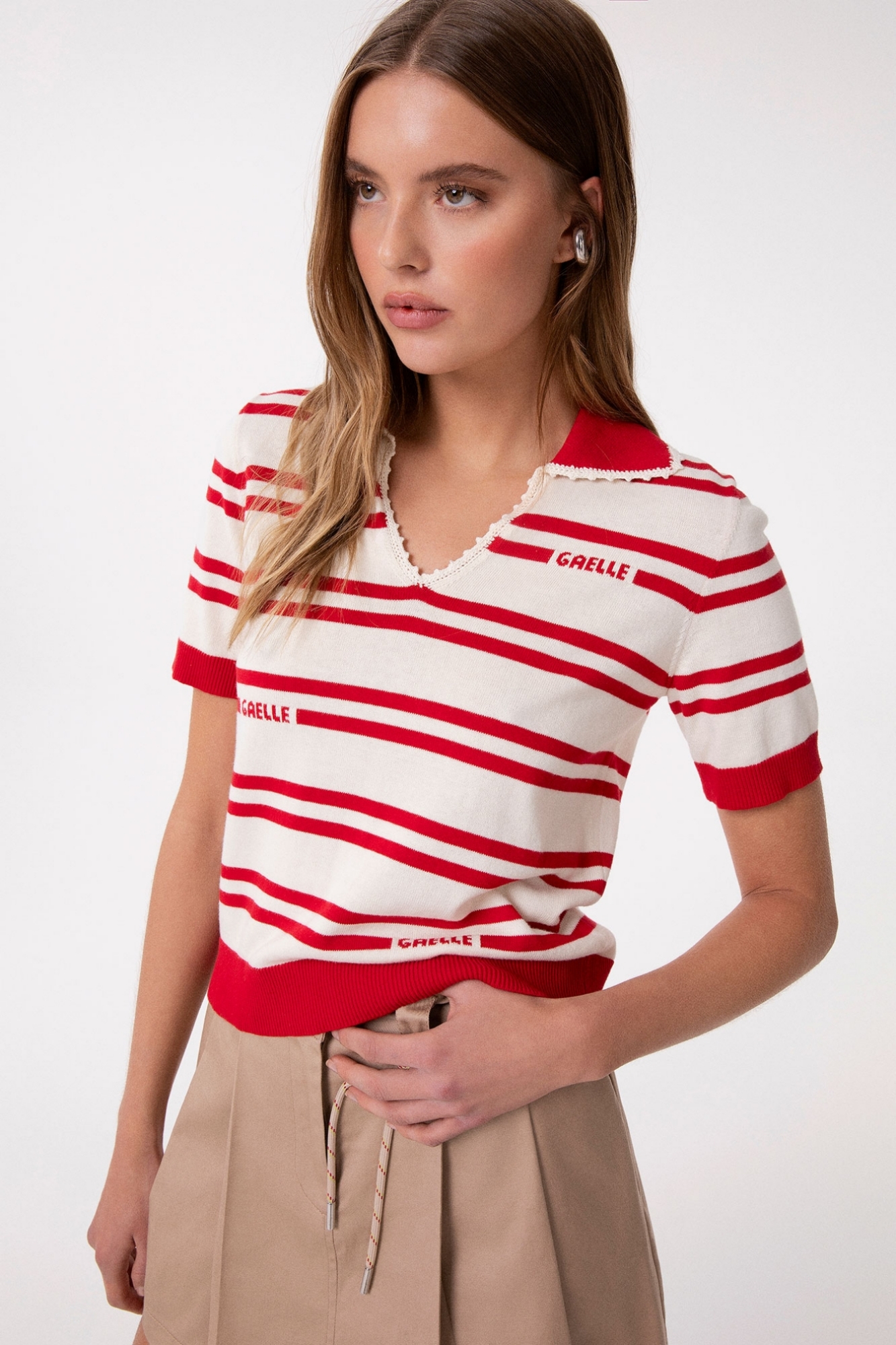 Striped Knit Polo • Red - Gaëlle Paris