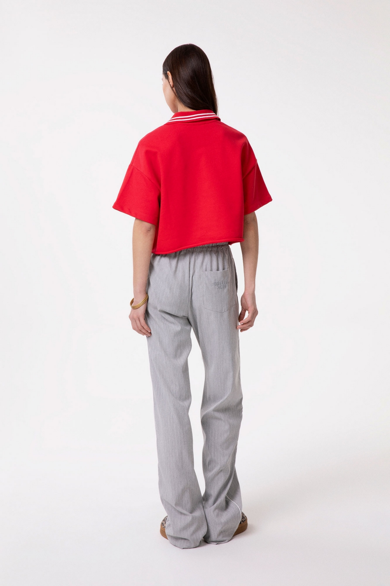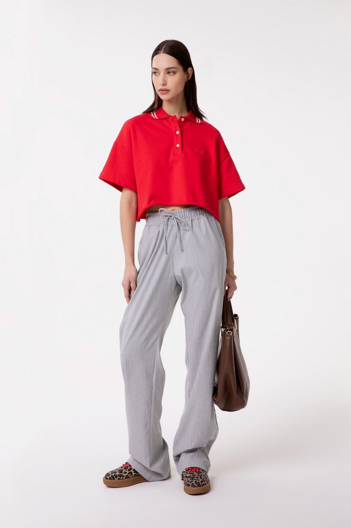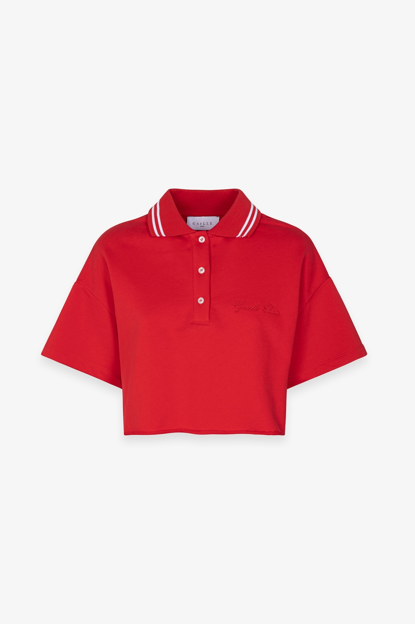 Half-sleeved polo shirt with knitted collar and heart-side embroidery