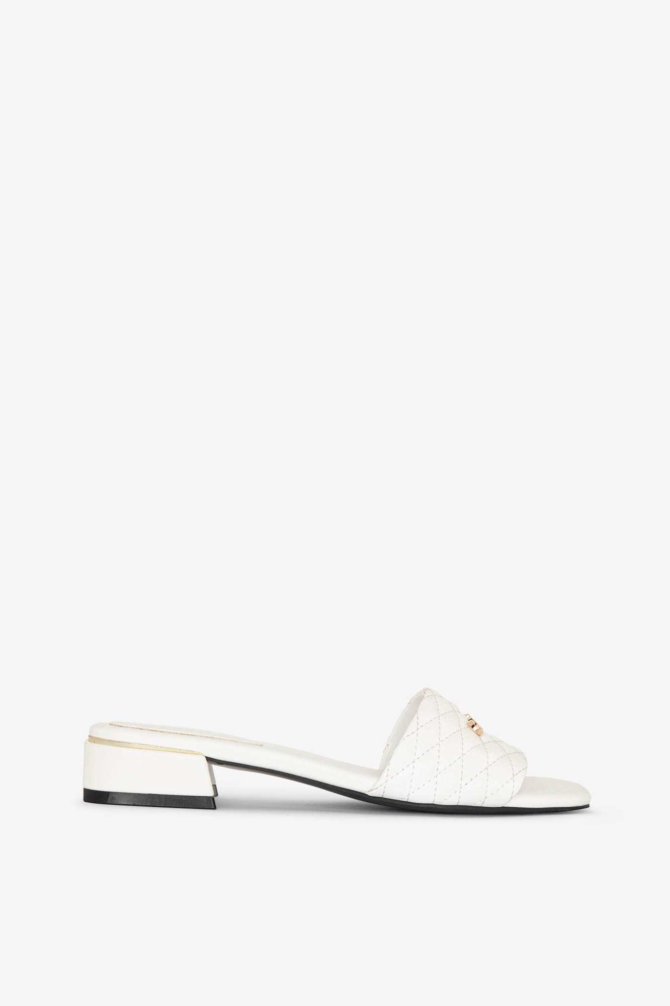 Matelasse Fabric Heeled Sandal with Logo Plaque