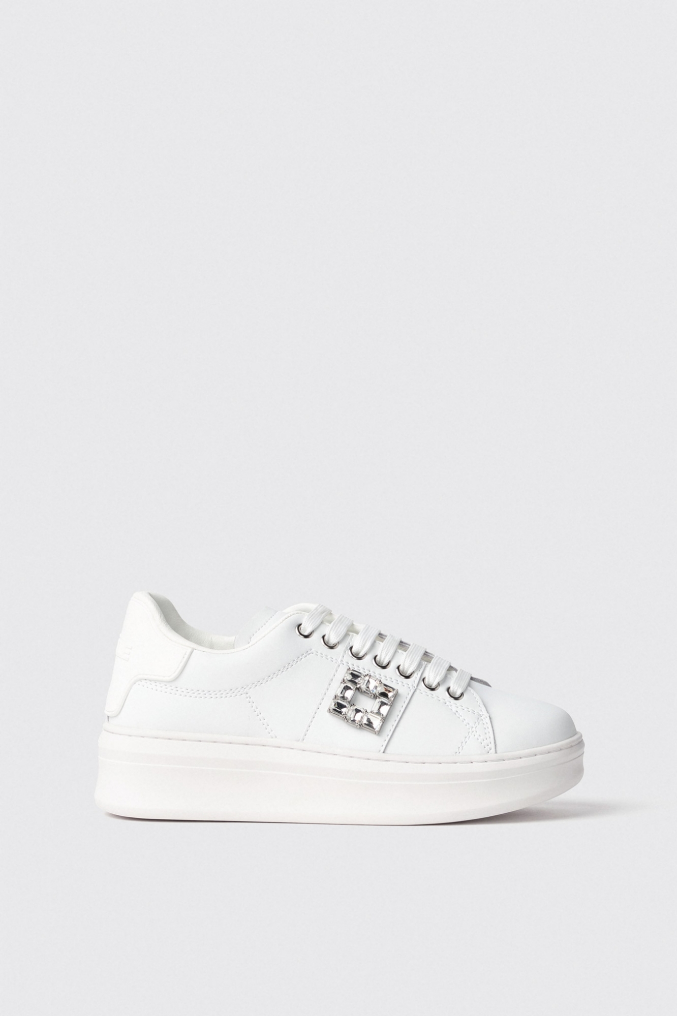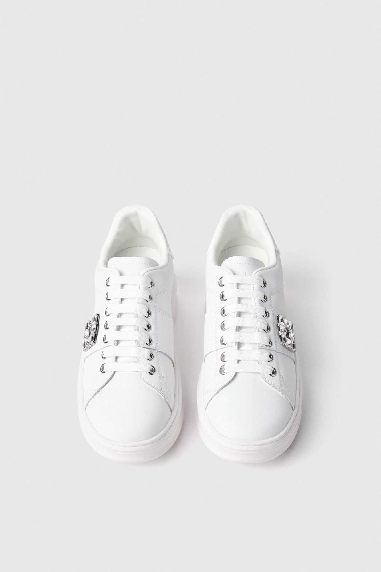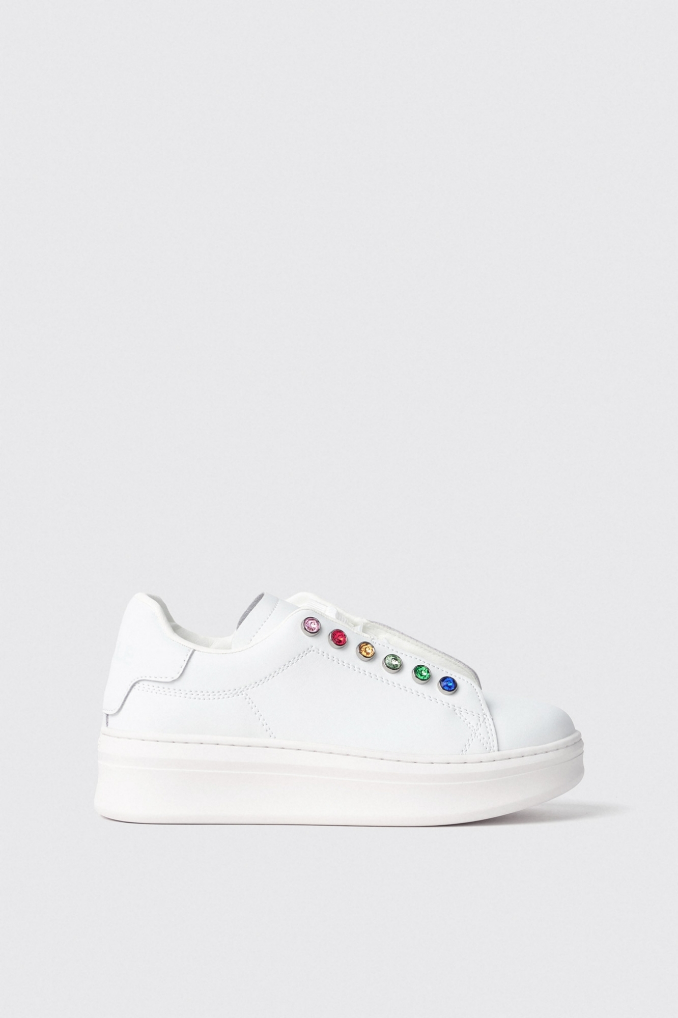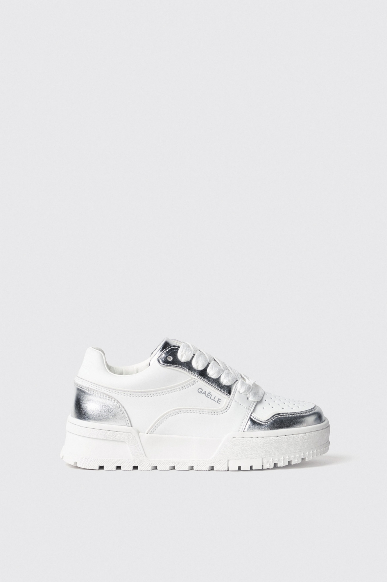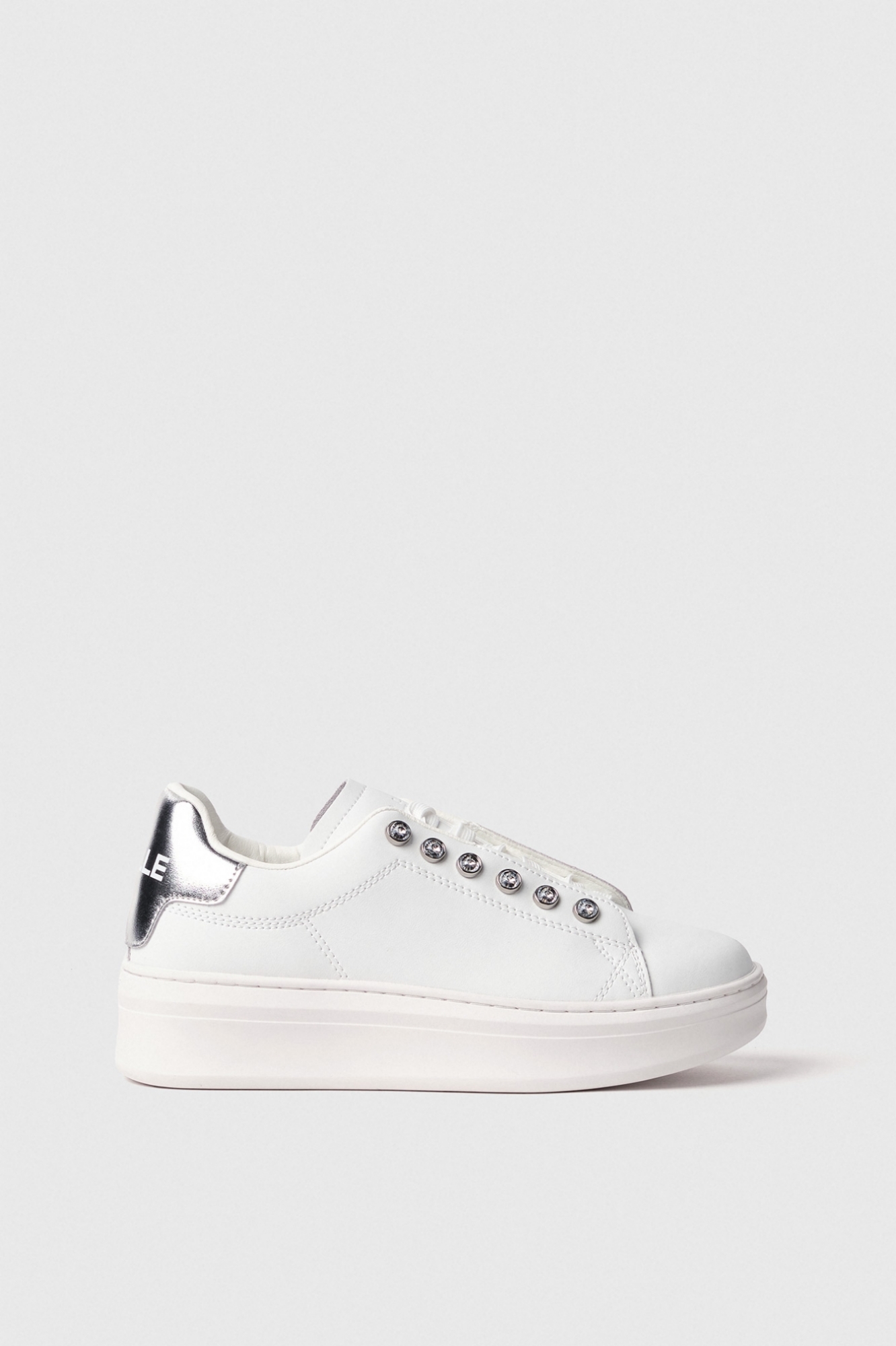 Addict Sneaker with Rhinestone Lace Loop and Laminated Heel • Silver