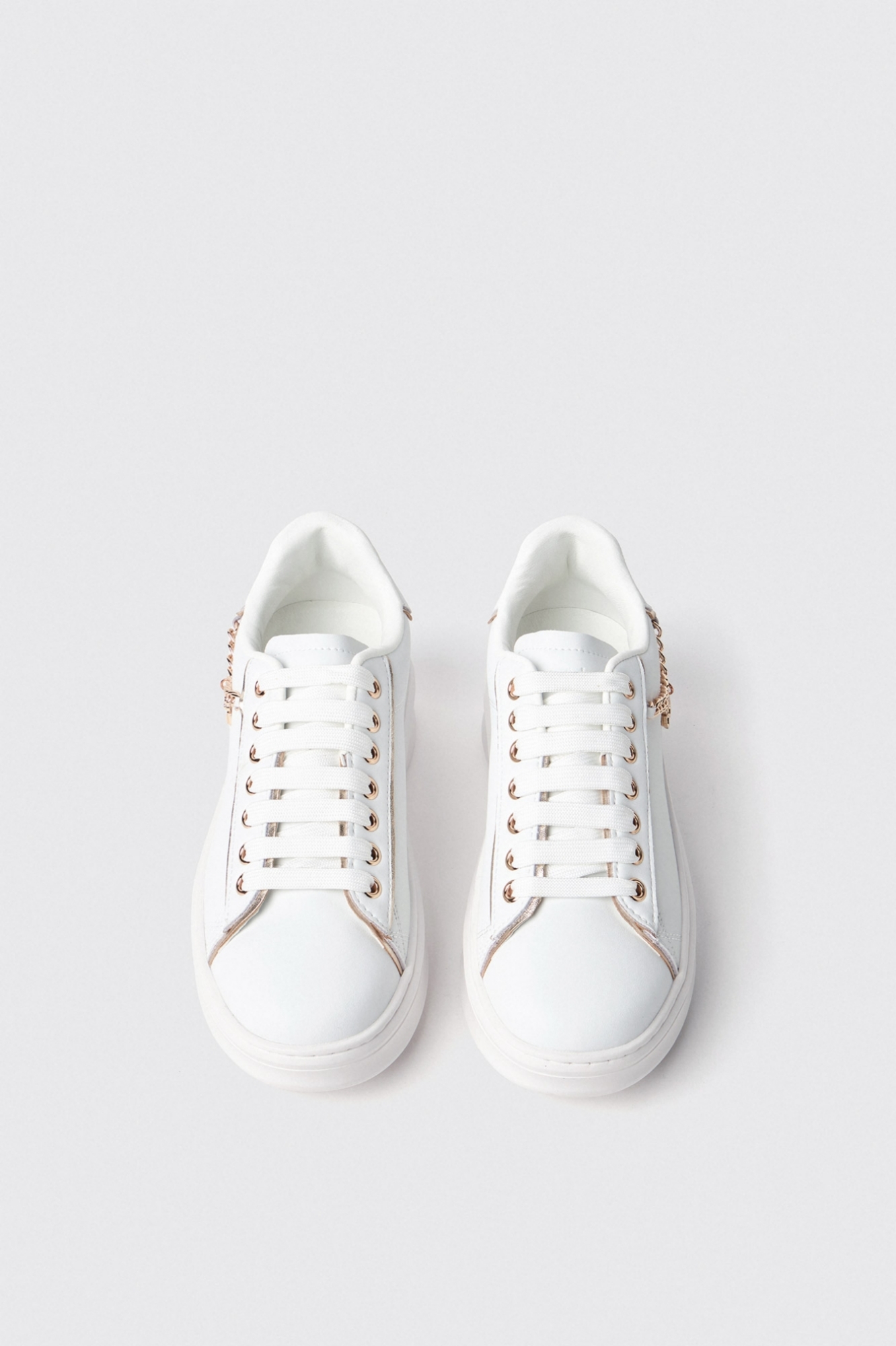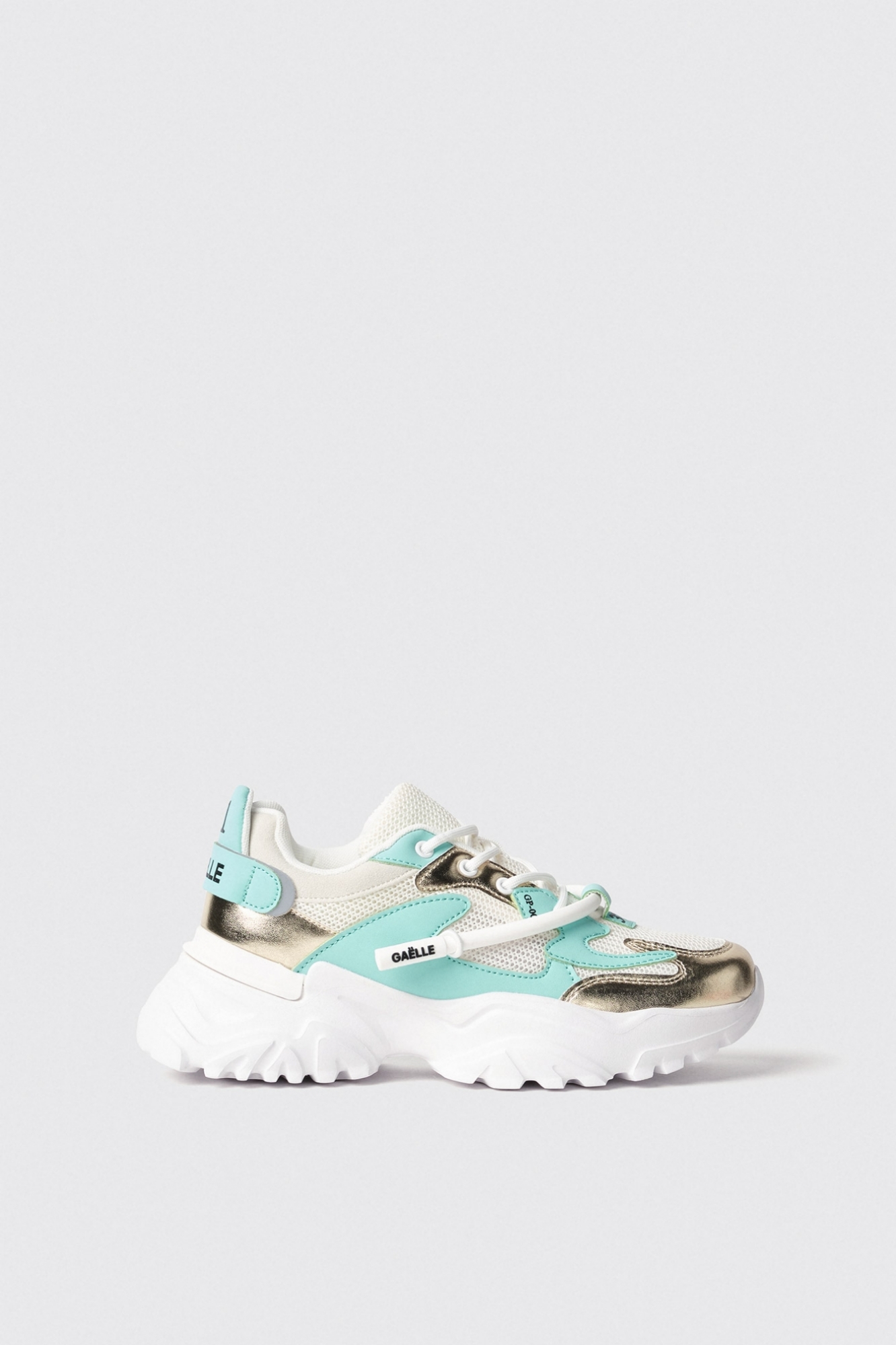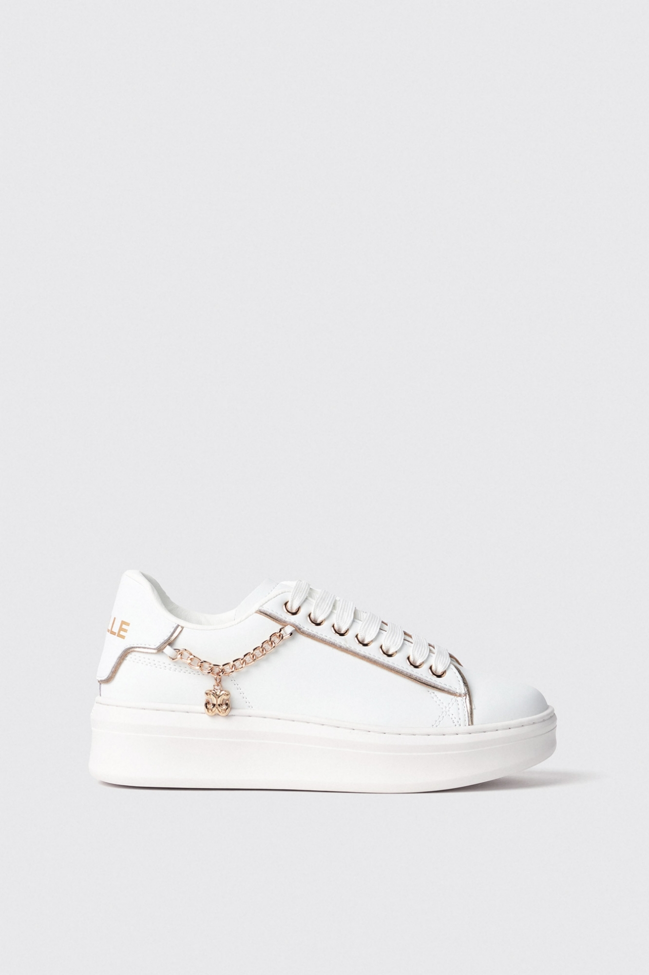 Addict Sneaker with Rhinestone Lace Loop and Laminated Heel • Gold