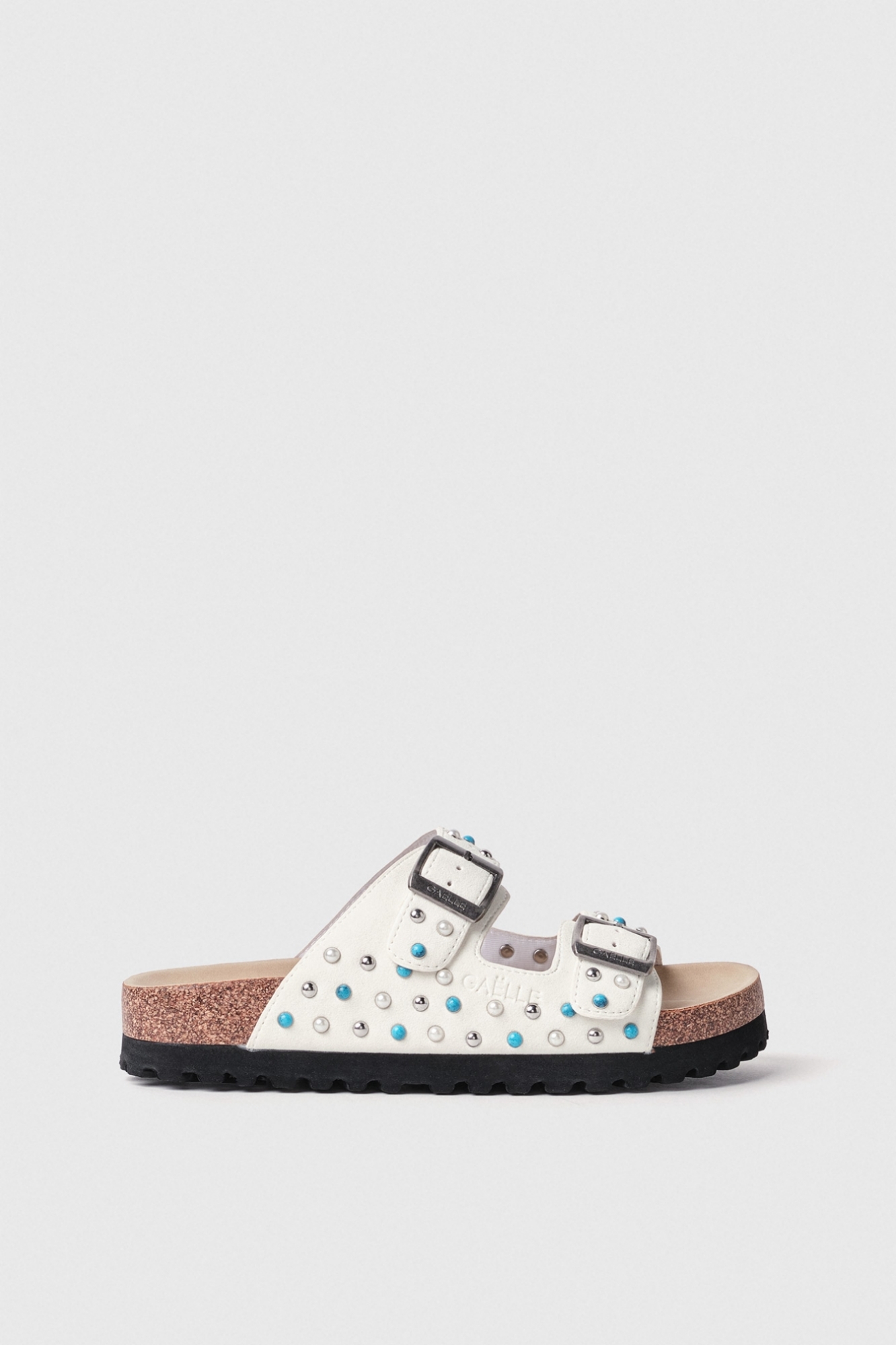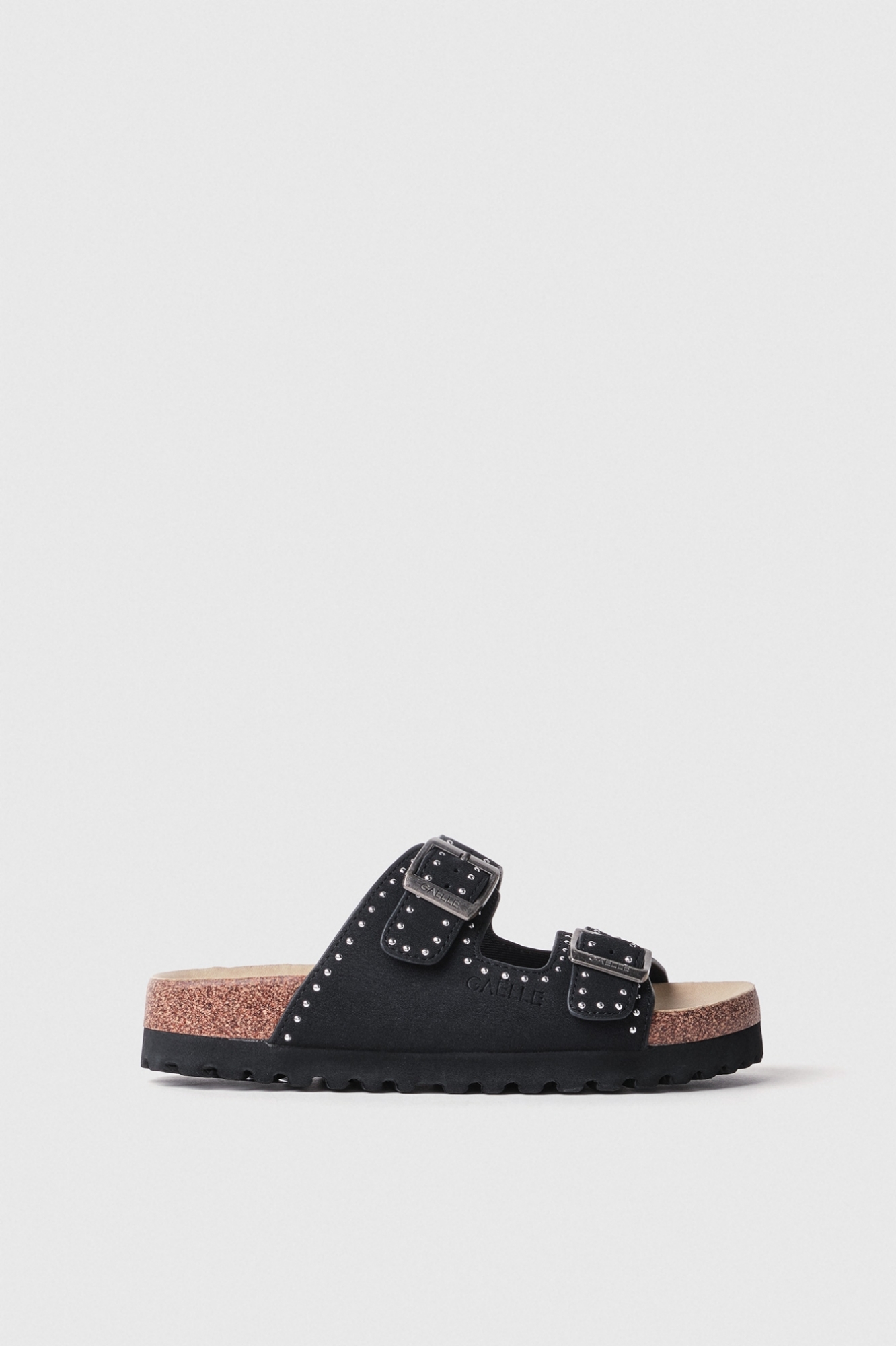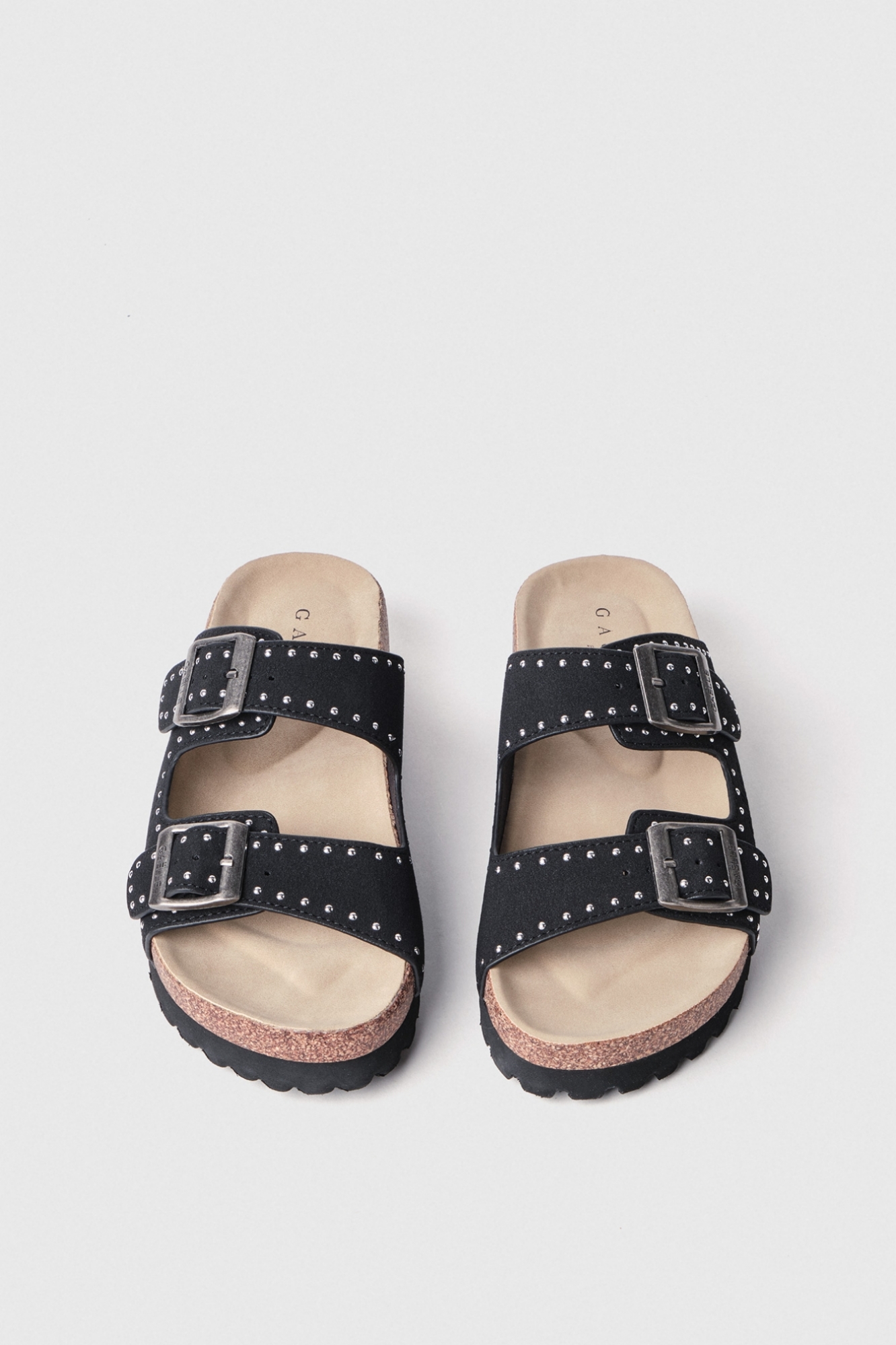 Eskimo Boots Suede Sabot with Macrame Band and Gaelle Logo Printed on the Upper • Black
