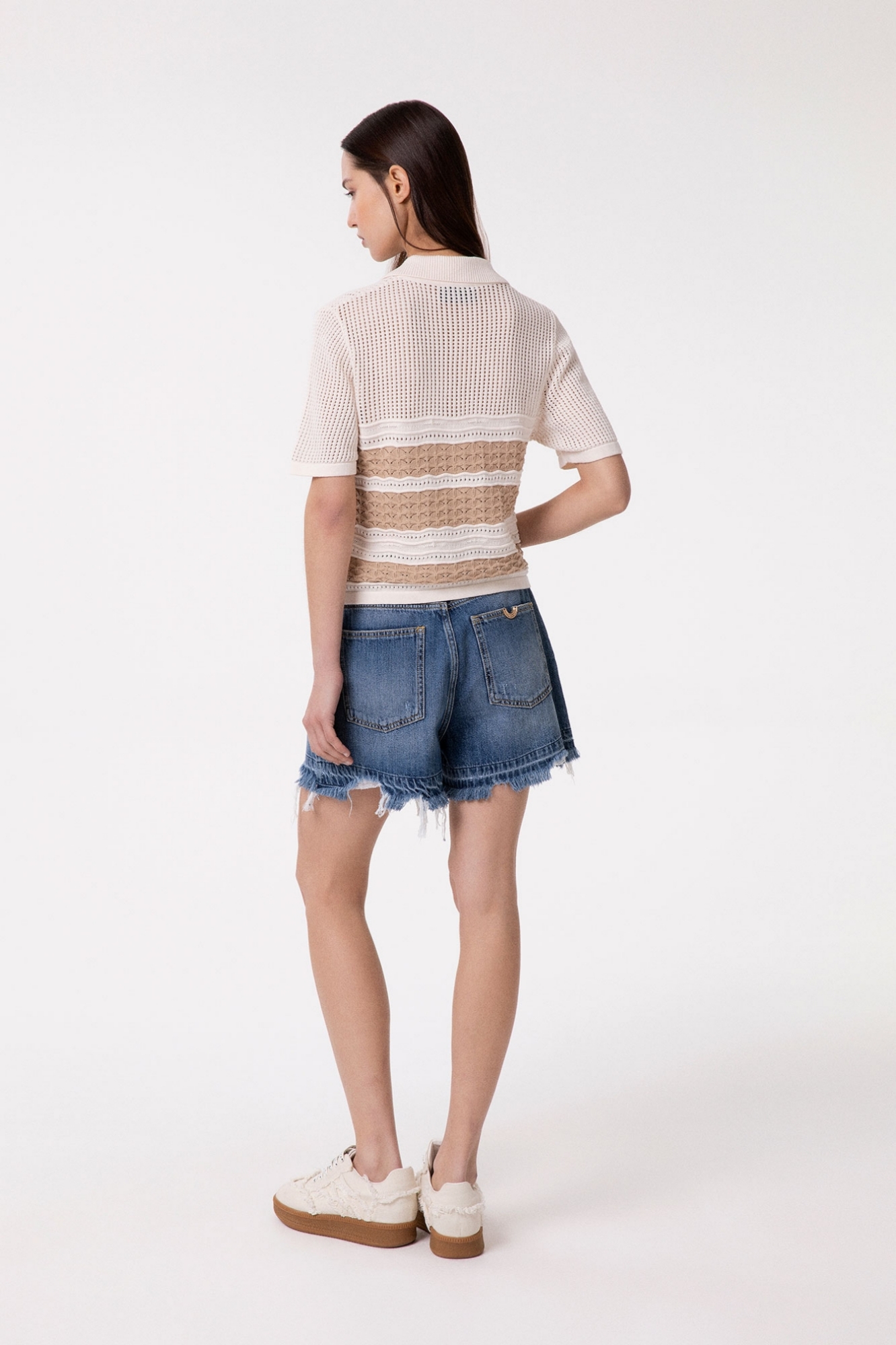 Denim Shorts With Logo Clamp On Back Pocket