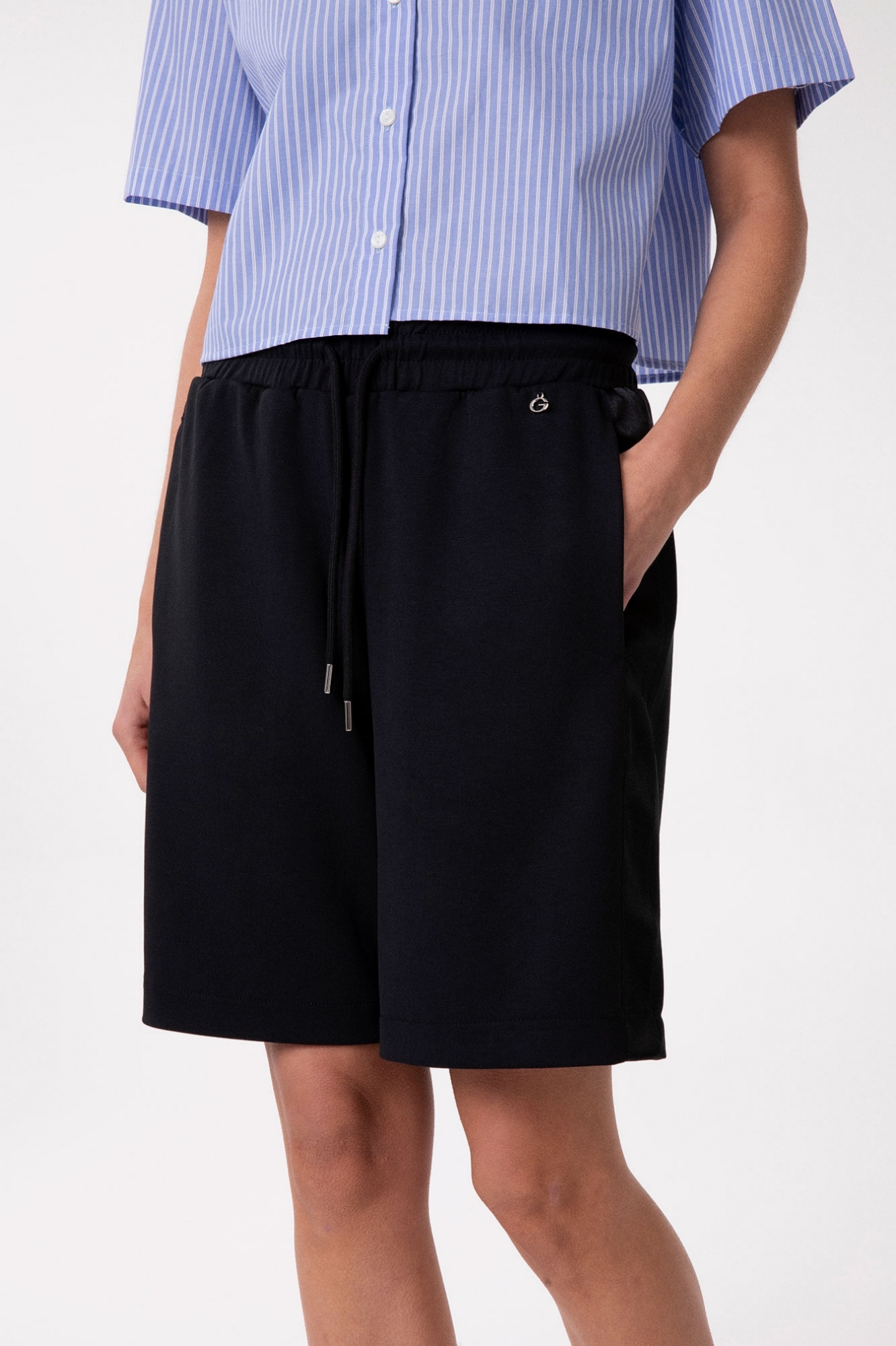 Interlock Shorts with Elasticated Waistband, Satin Side Bands and Silver G Pendant