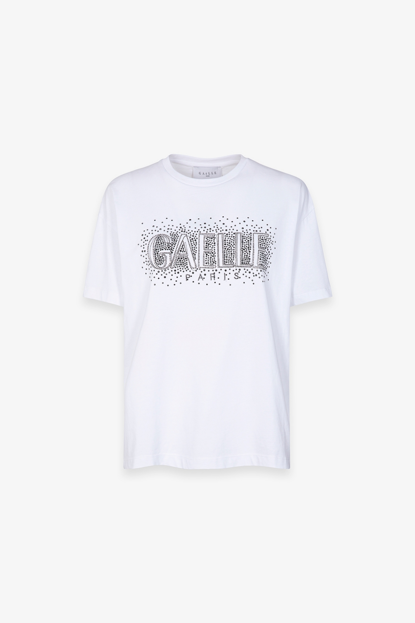 Crew Neck Half Sleeve T-Shirt with Embroidery and Rhinestone Appliqué