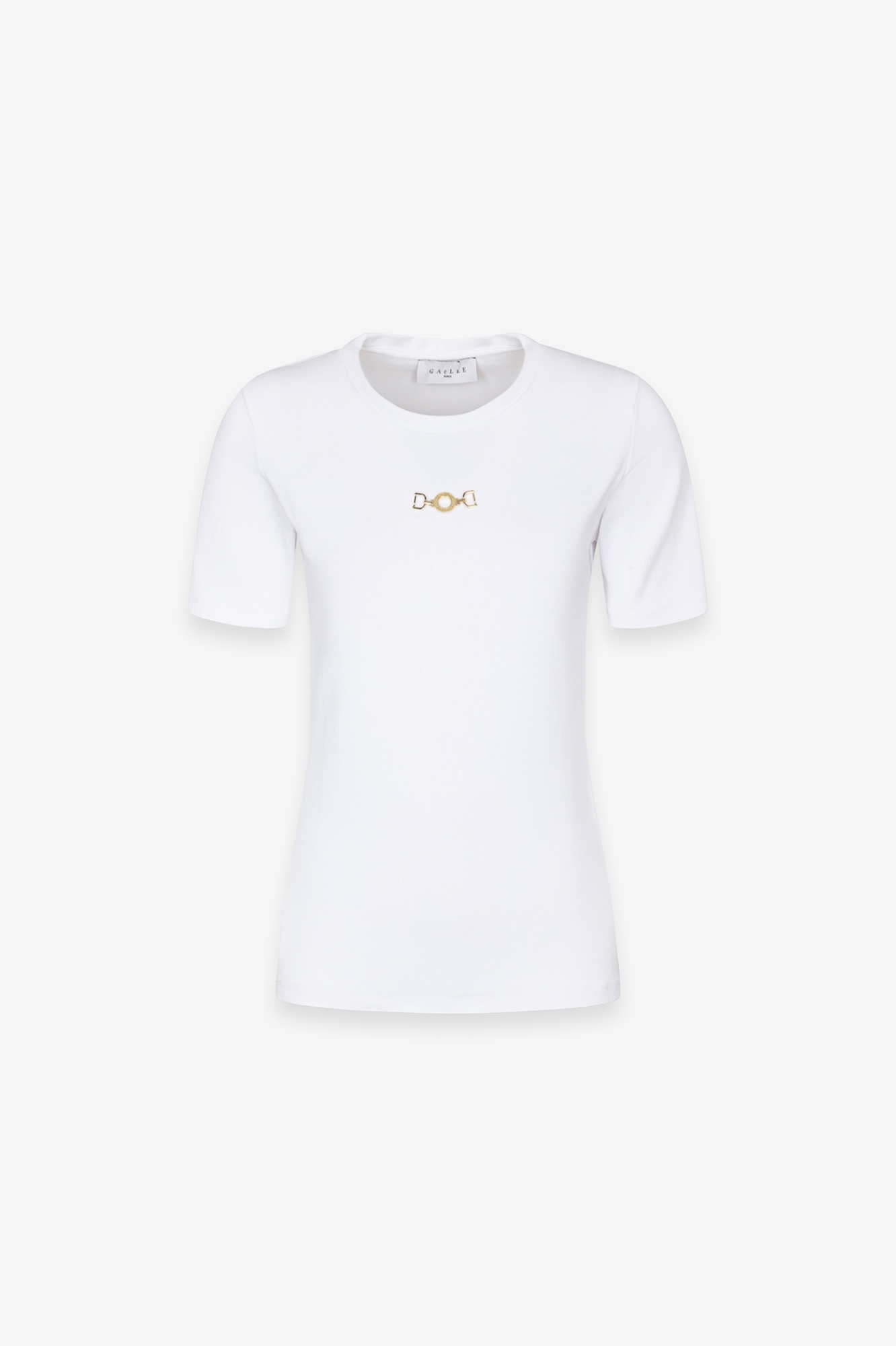 Crew Neck T-Shirt with Half Sleeves and Ribbed Collar and Clamp on the Front