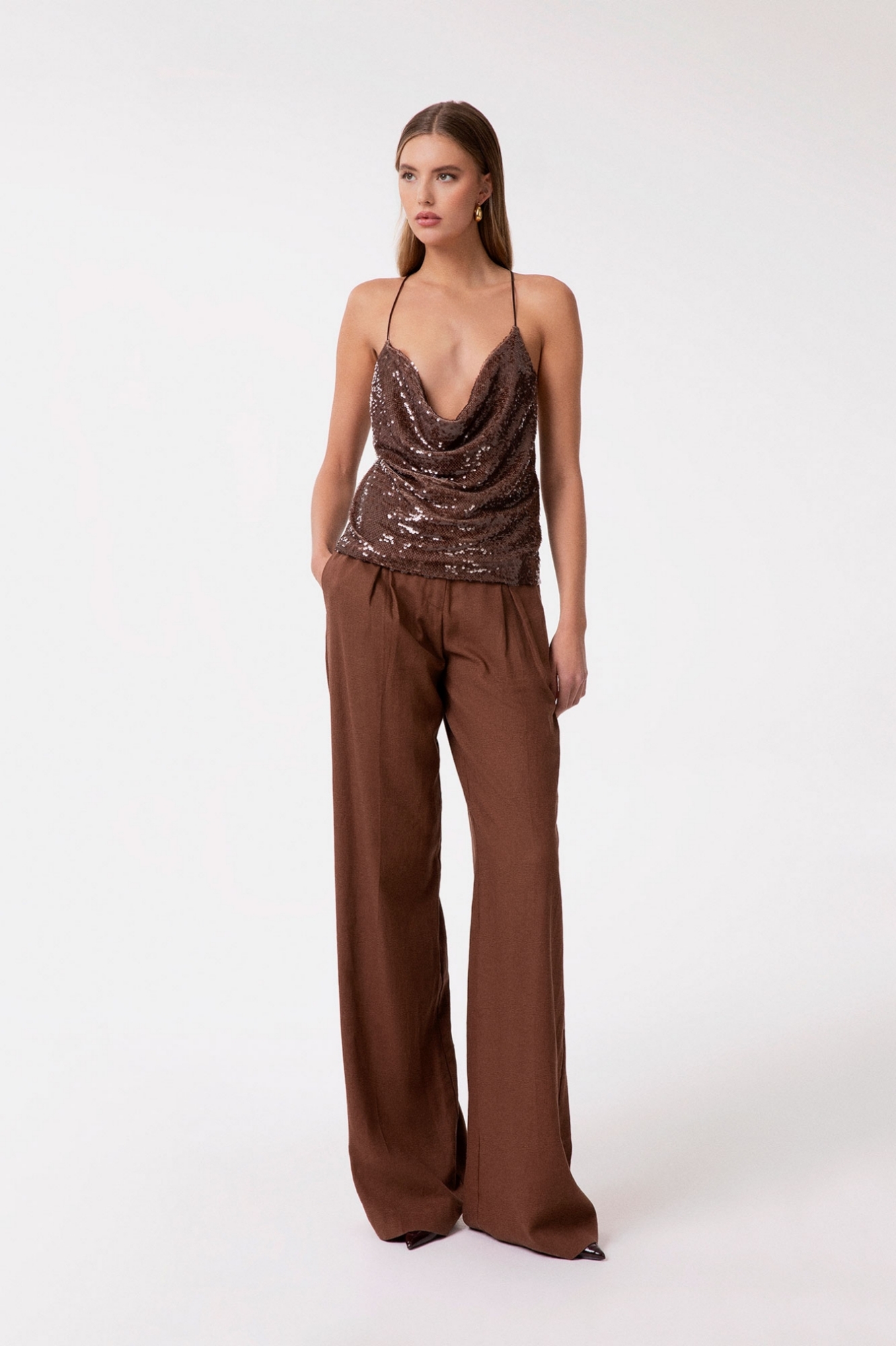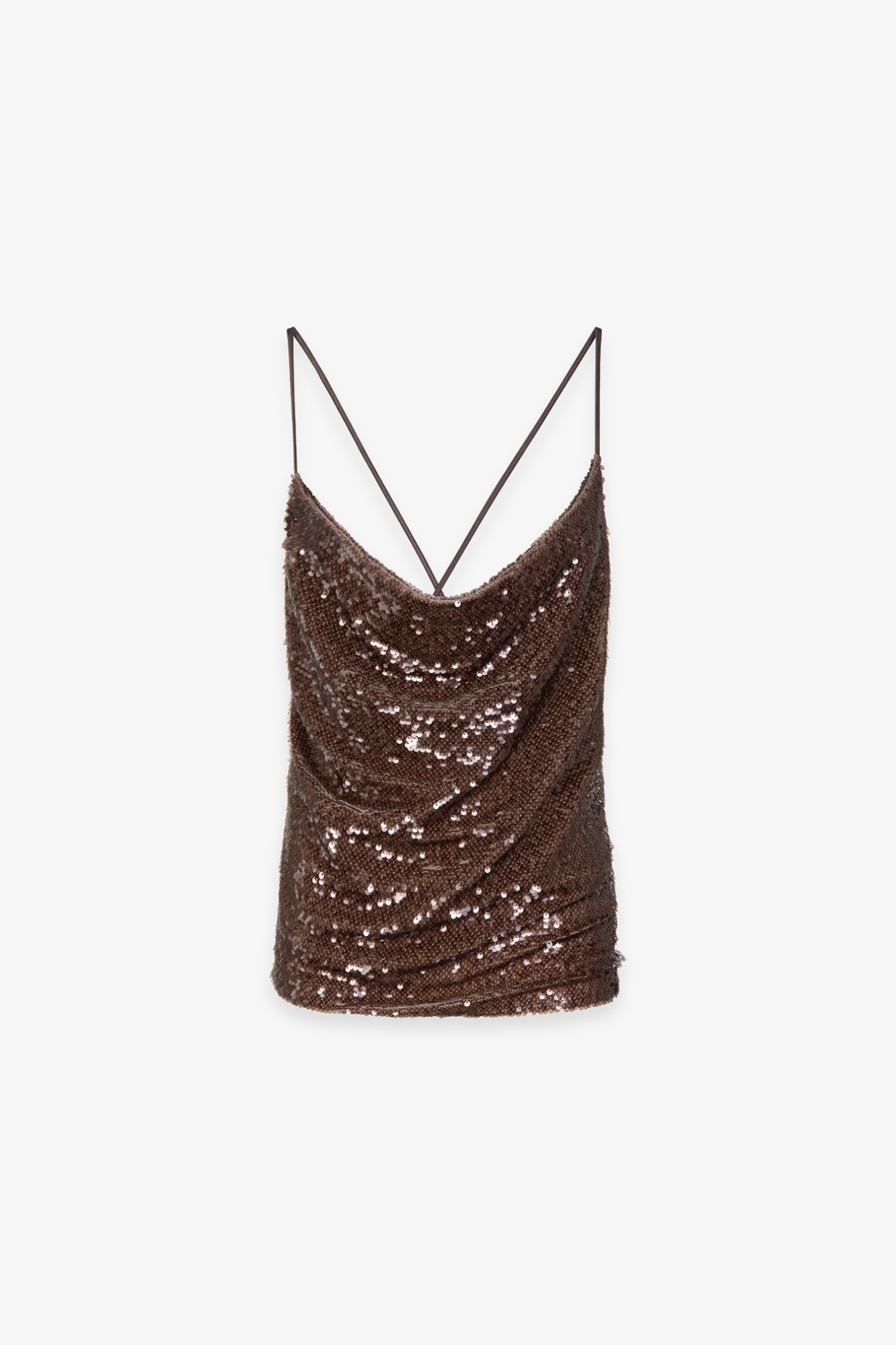 Sequined Fabric Cowl Neck Strap Top