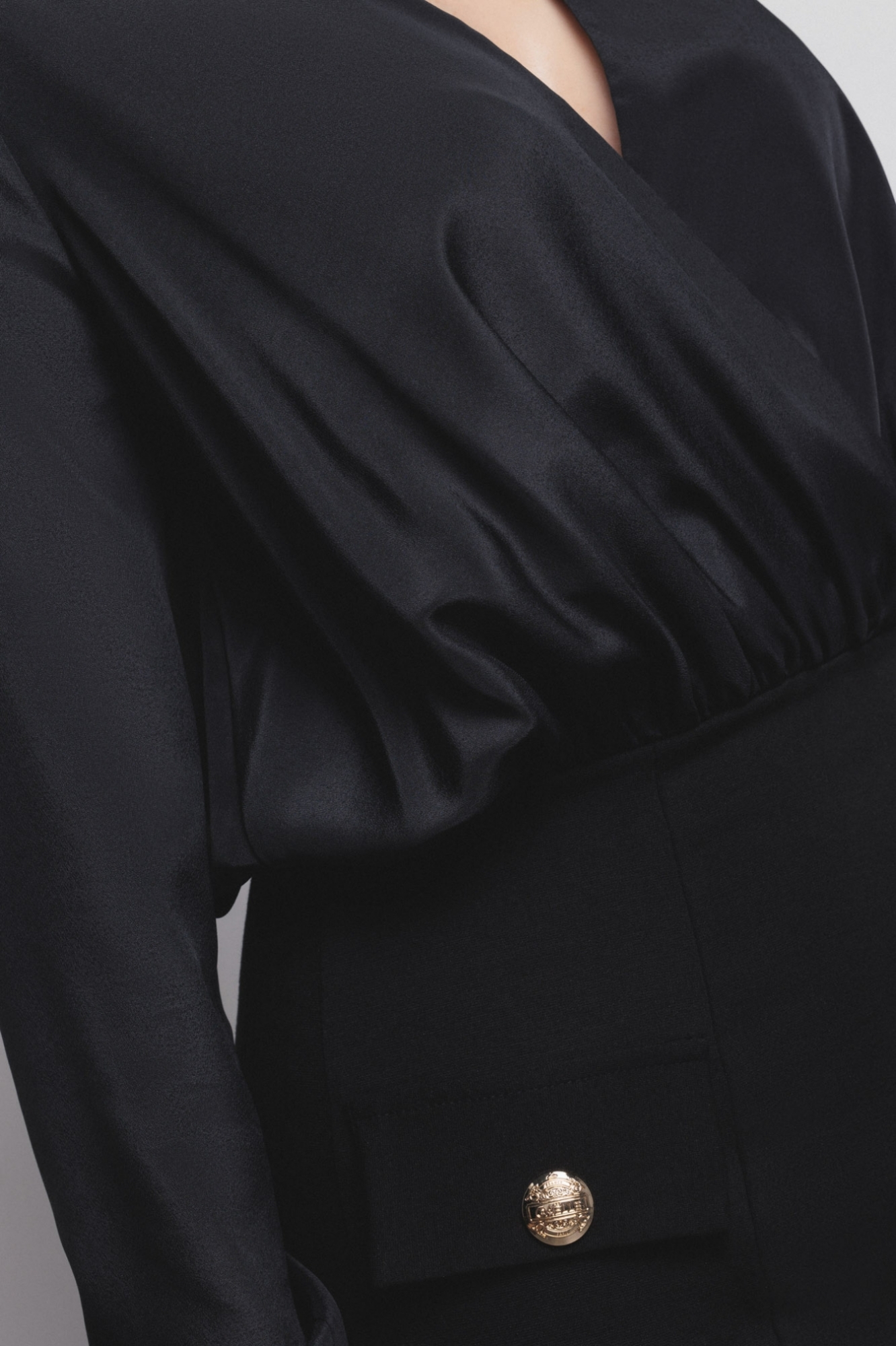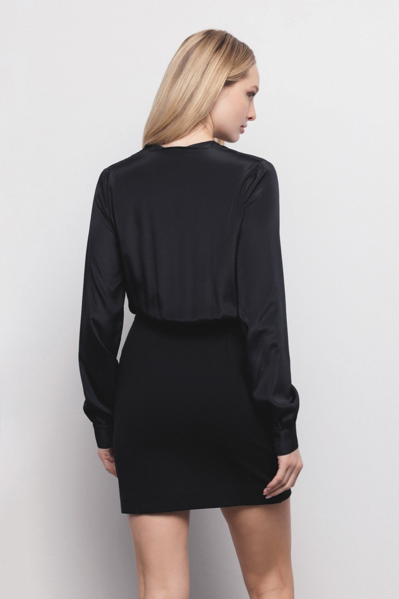 Abito All In One Con Blusa Incrociata Sul Davanti Bimaterico In Punto Milano E Crepe De Chine