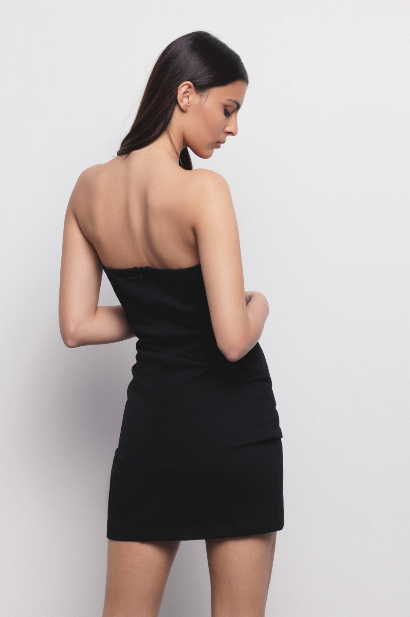 Abito Corto A Fascia Asimmetrico Con Applicazione Maxi Borchie