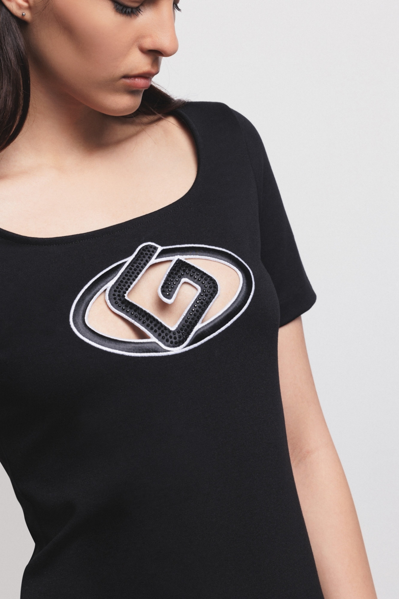 Abito Corto Aderente Mezza Manica Con Logo Ricamato Piu Strass