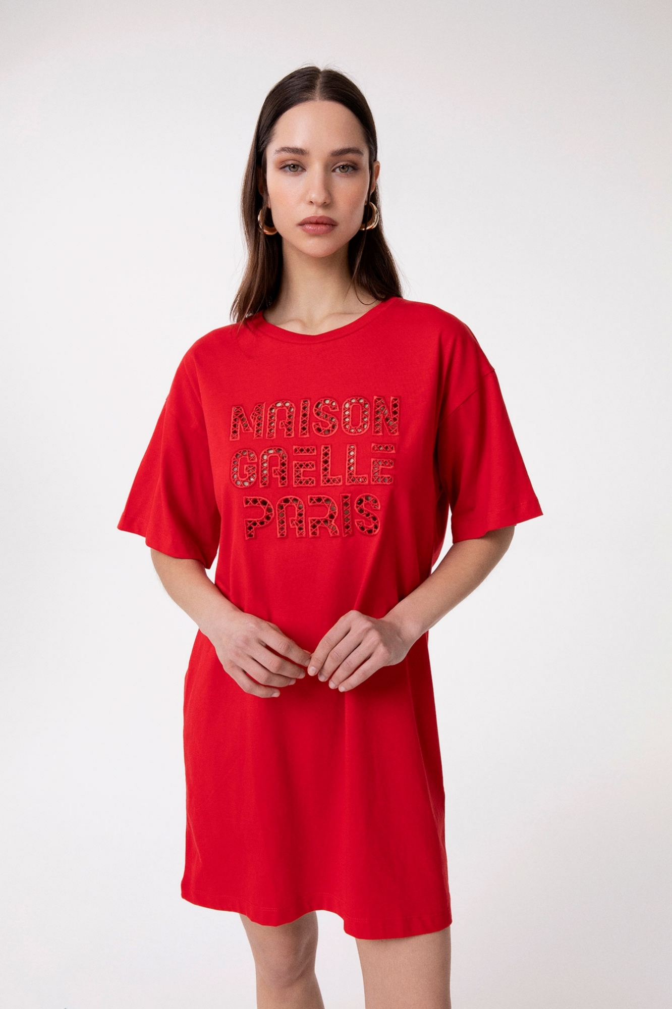 Abito Corto Paricollo Mezza Manica Con Ricamo Traforato