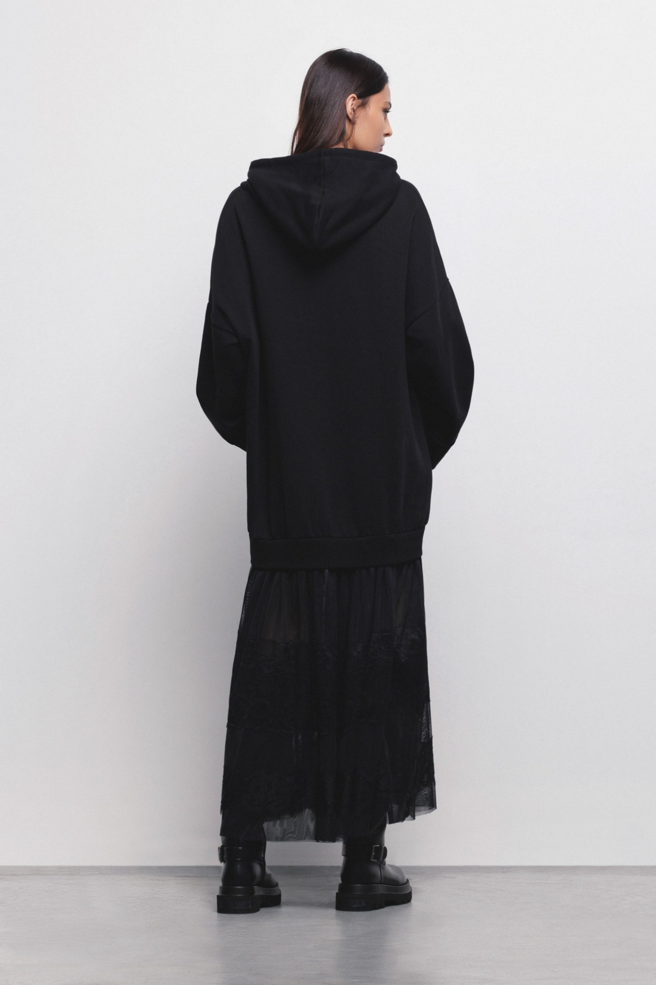 Abito In Felpa Con Gonna In Tulle E Pizzo