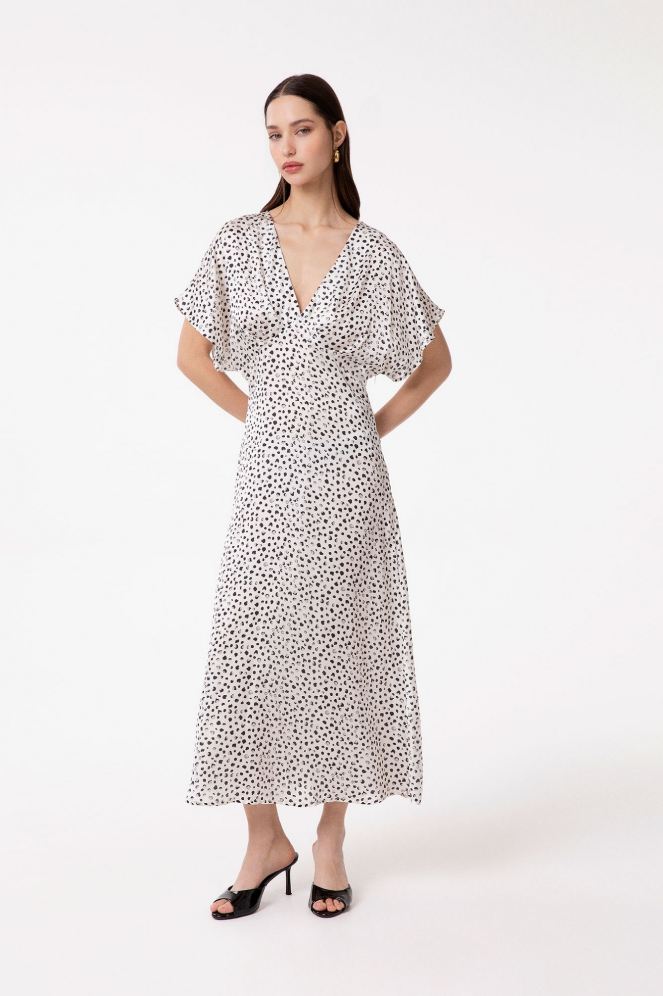 ABITO LUNGO CON MANICA KIMONO CORTA IN RASO STAMPATO