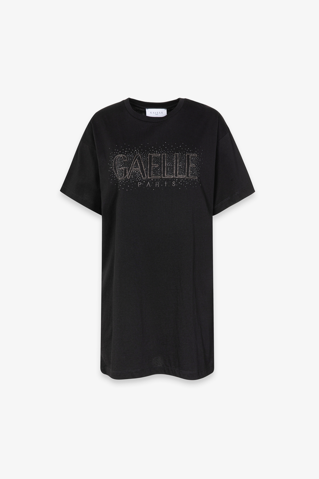 Abito Paricollo Mezza Manica In Jersey Con Ricamo E Appl. Strass