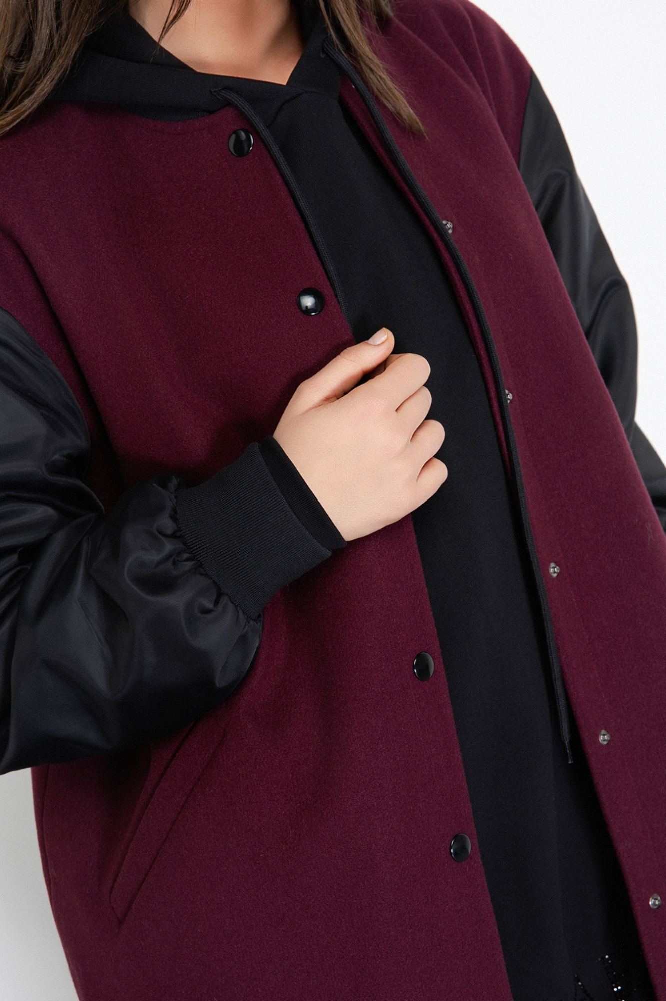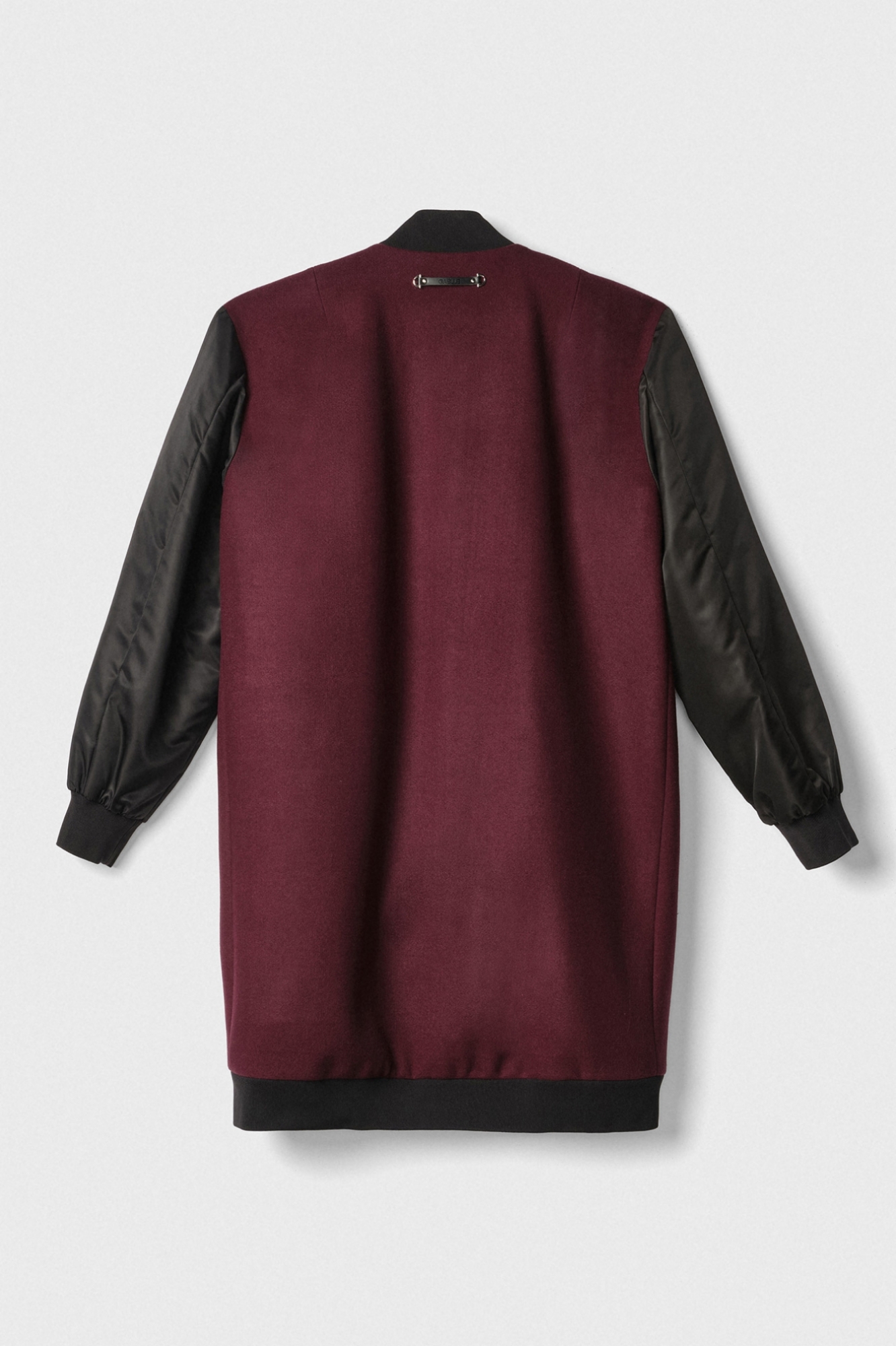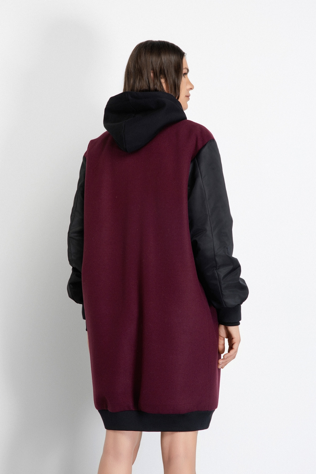Cappotto Lungo In Panno Con Maniche In Nylon