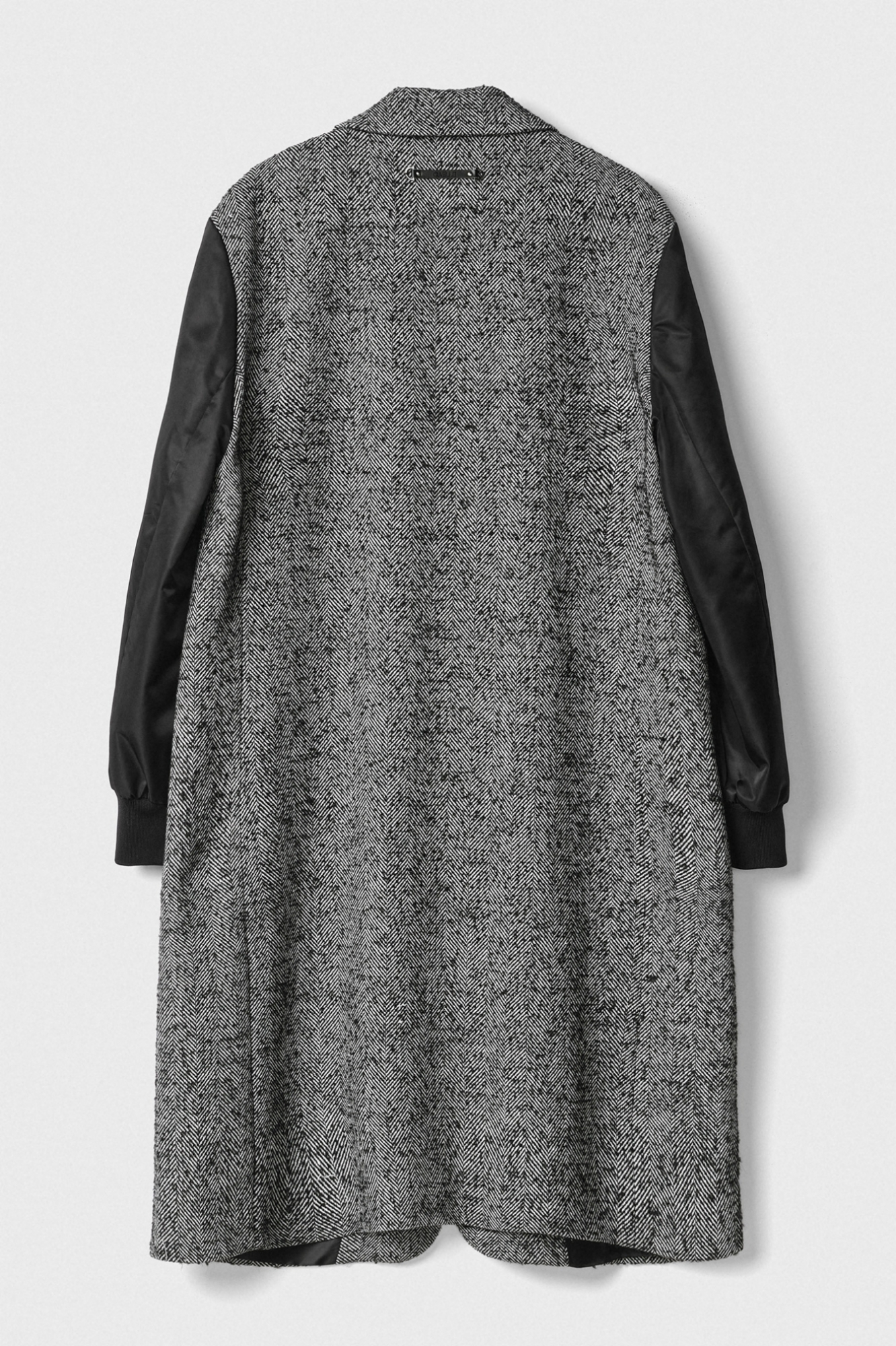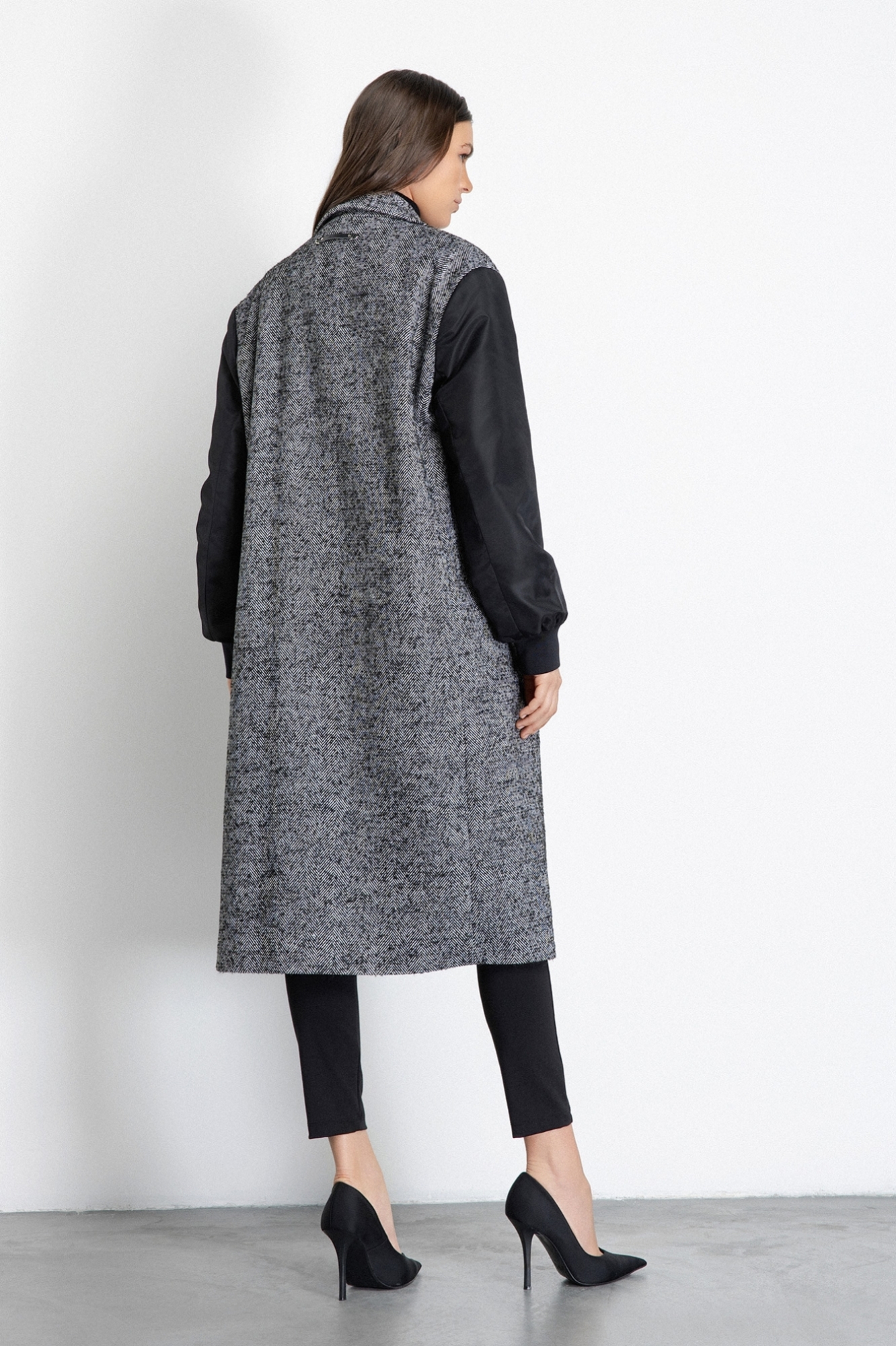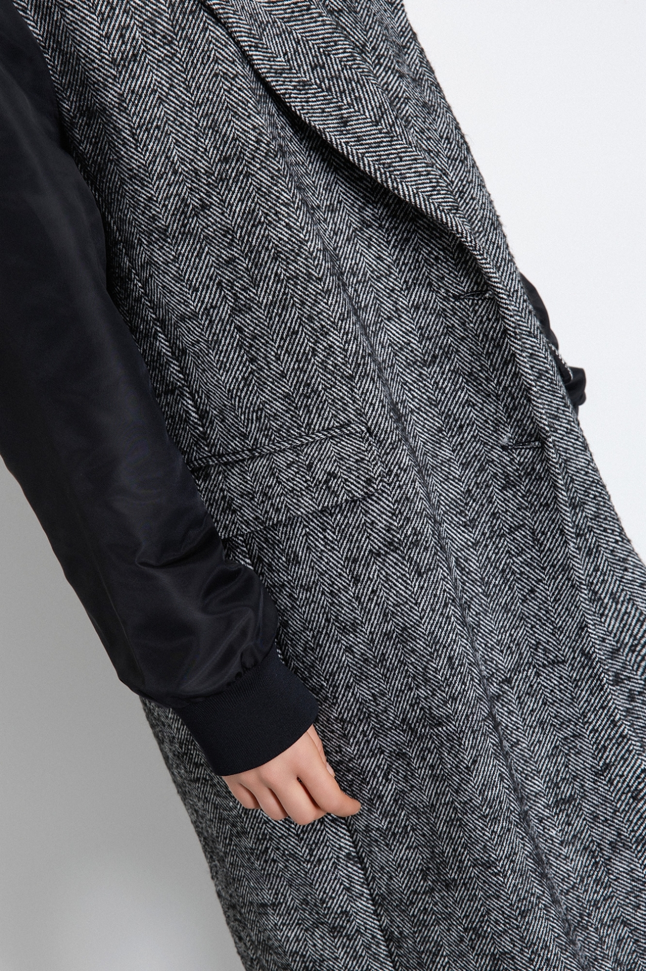 Cappotto Over Lungo In Panno E Maniche In Nylon