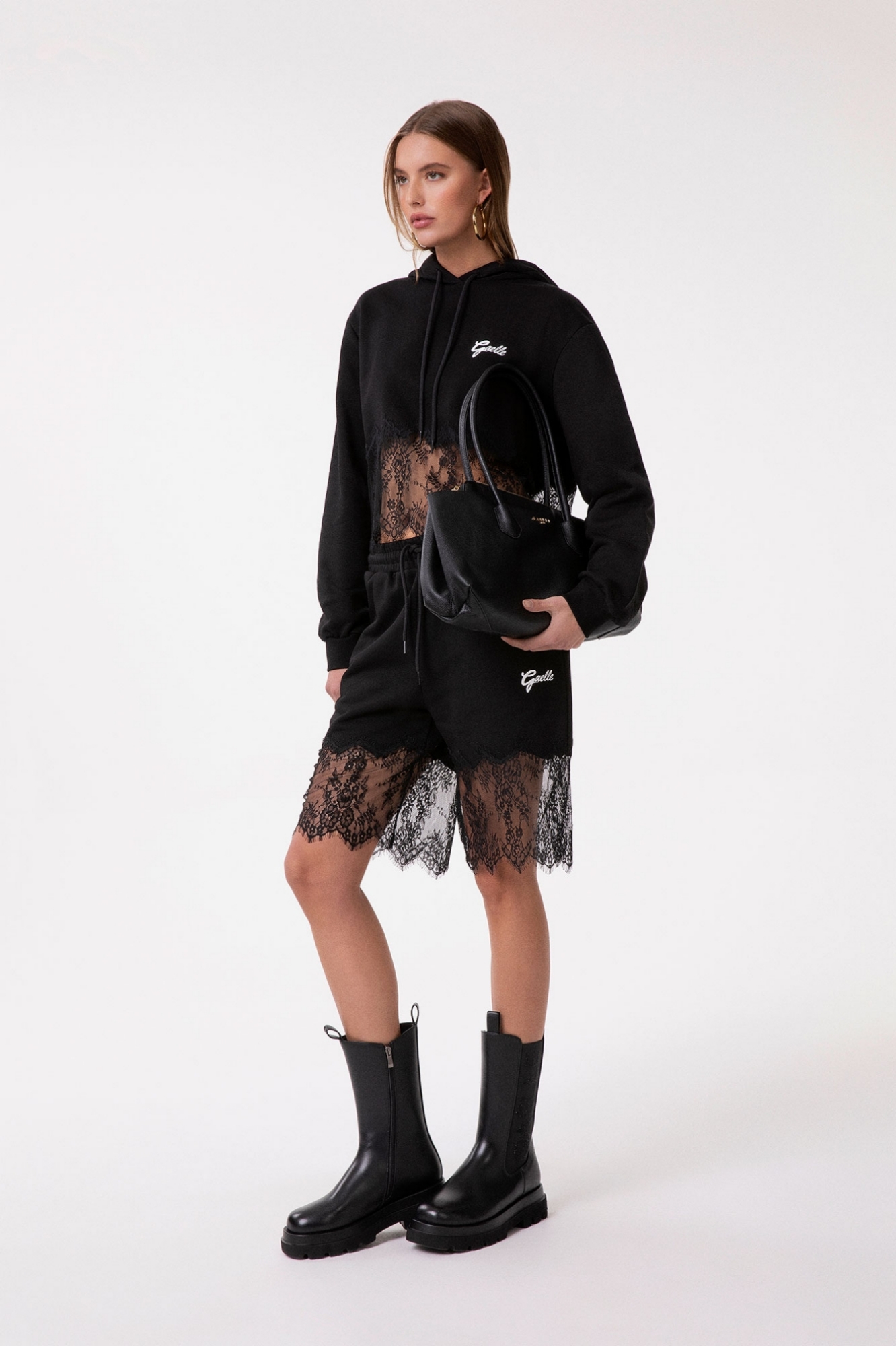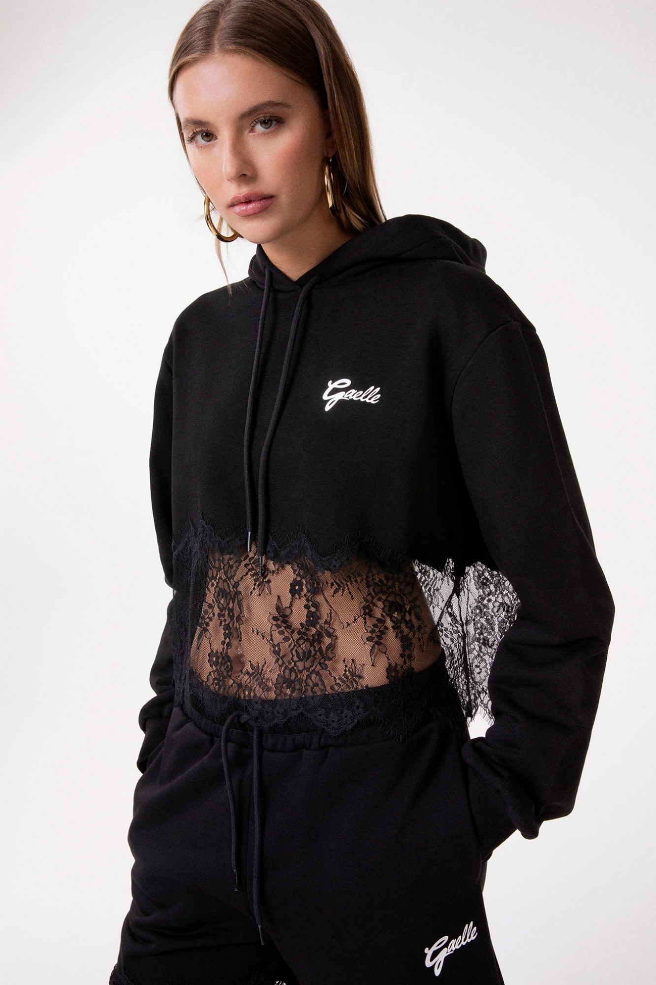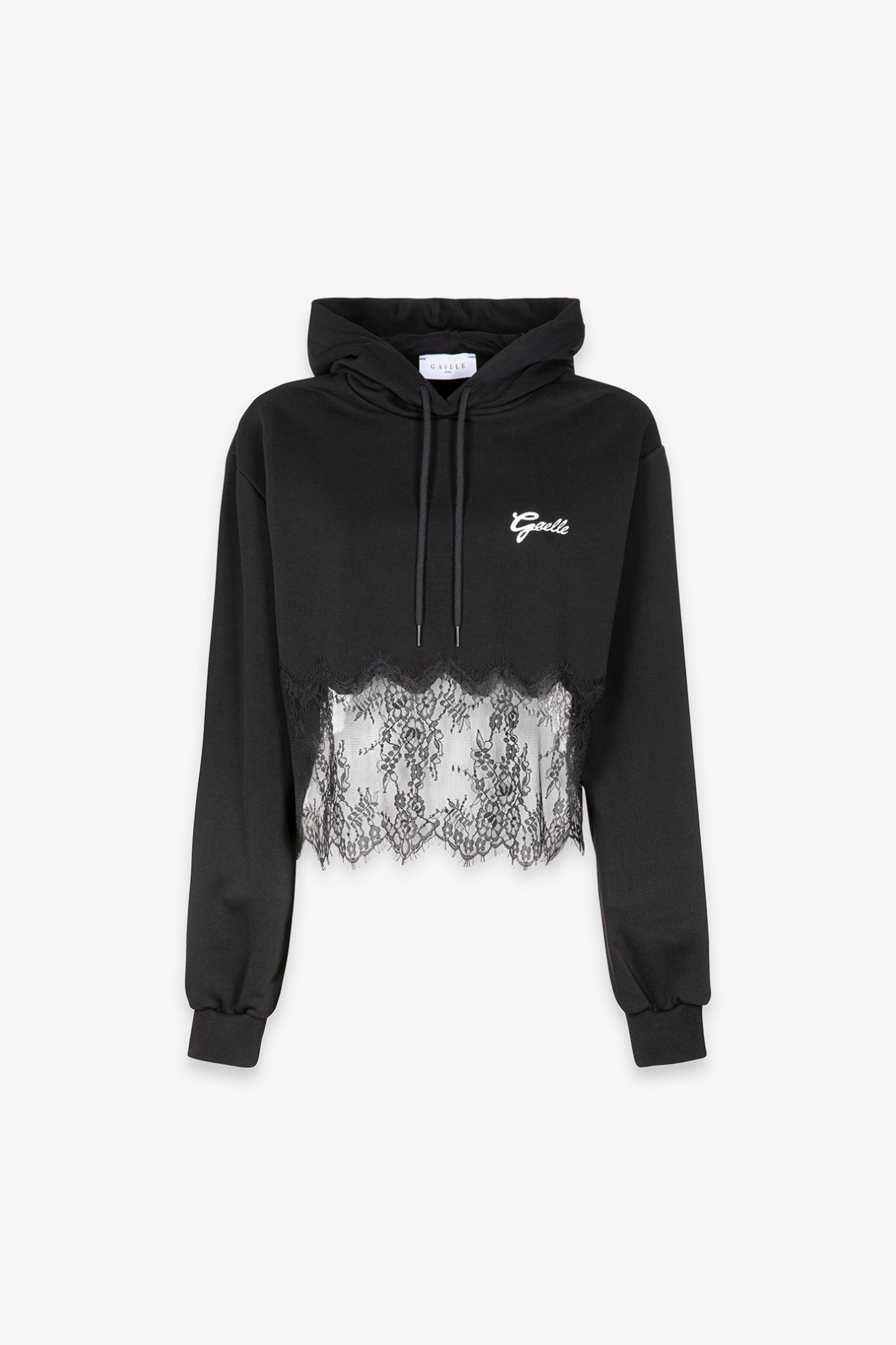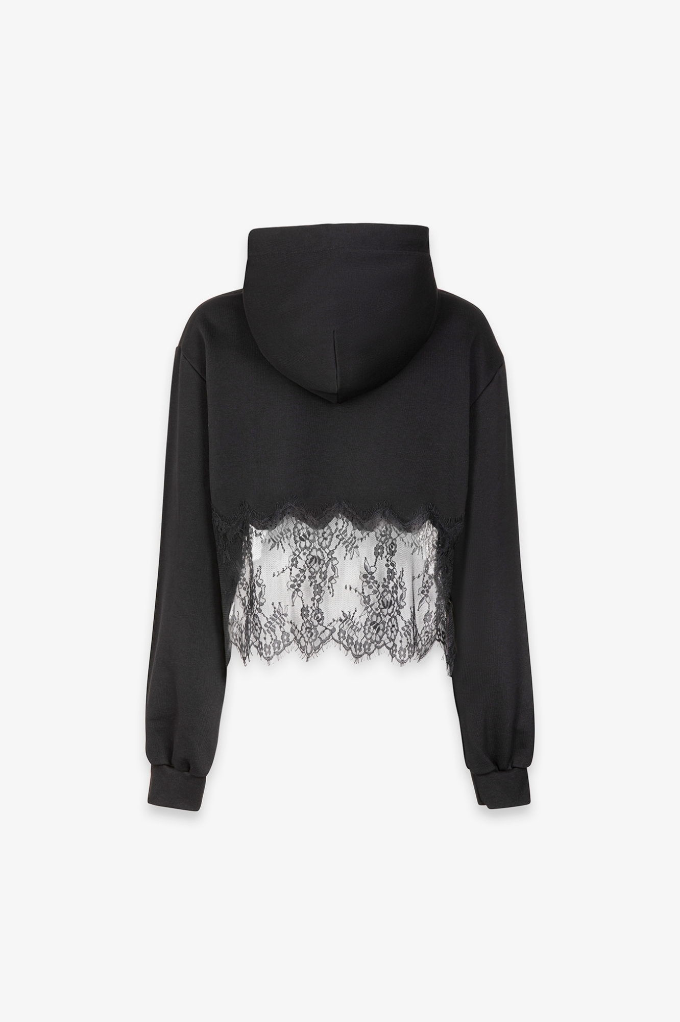 Felpa Con Cappuccio Cropped Con Banda In Pizzo