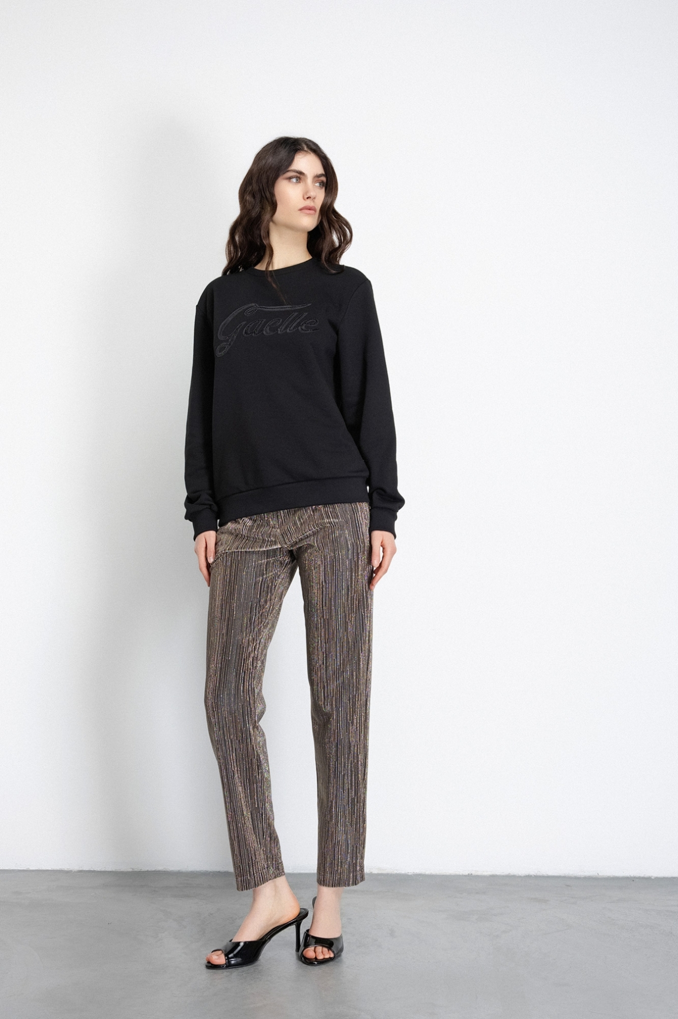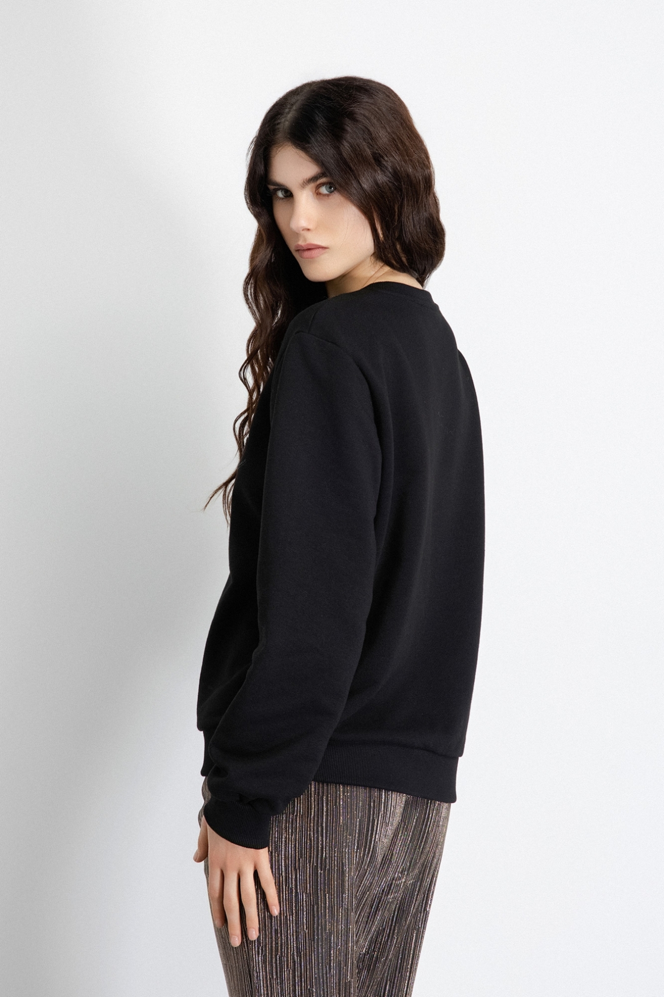 Felpa Paricollo Manica Lunga Con Personalizzazione In Ciniglia E Appl. Strass