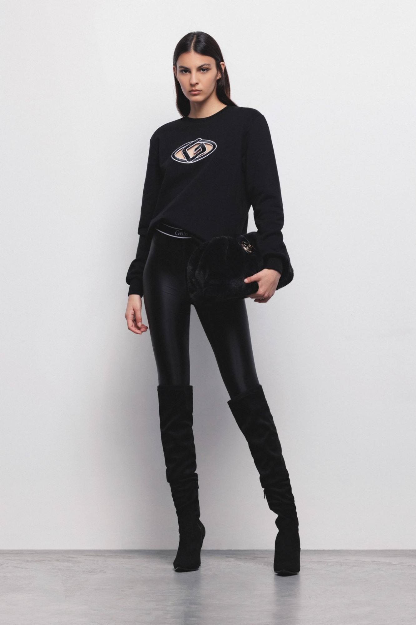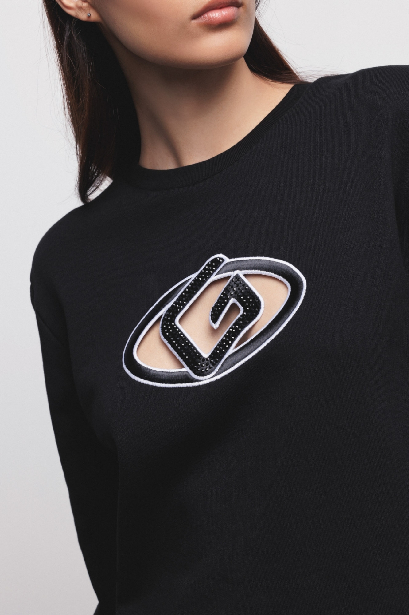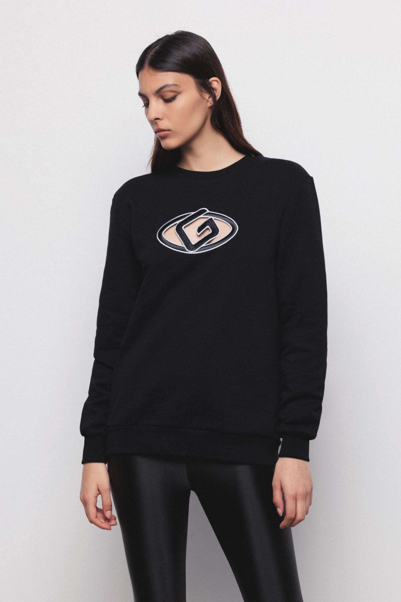 Felpa Paricollo Manica Lunga Con Ricamo Piu Strass Sul Davanti