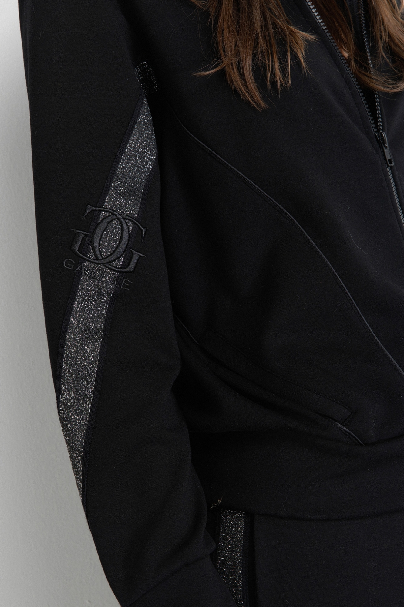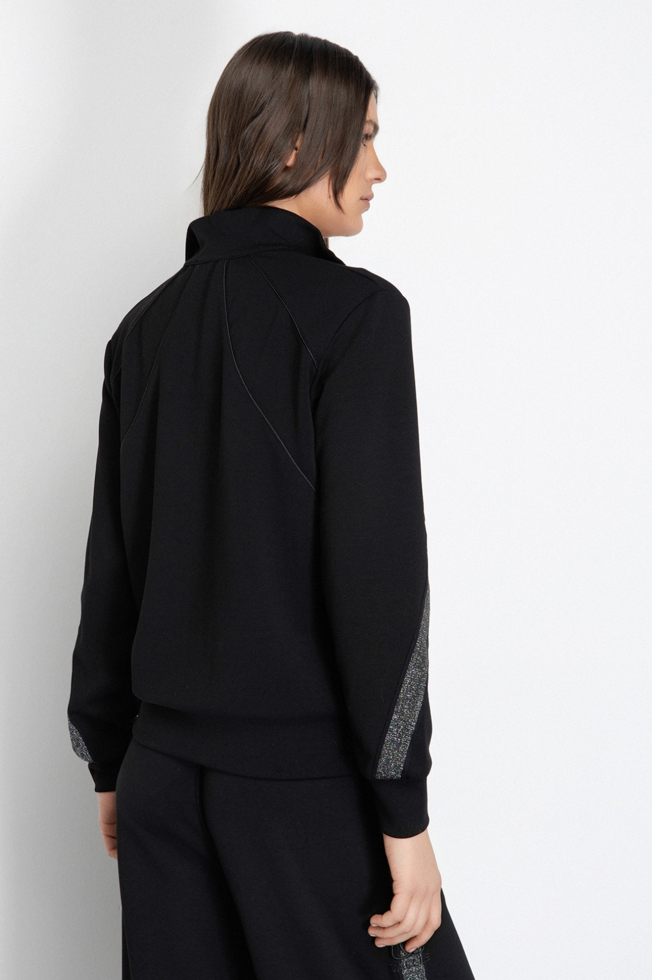 Felpa Zippata Con Tasche A Filetto E Applicazione Bande Lurex