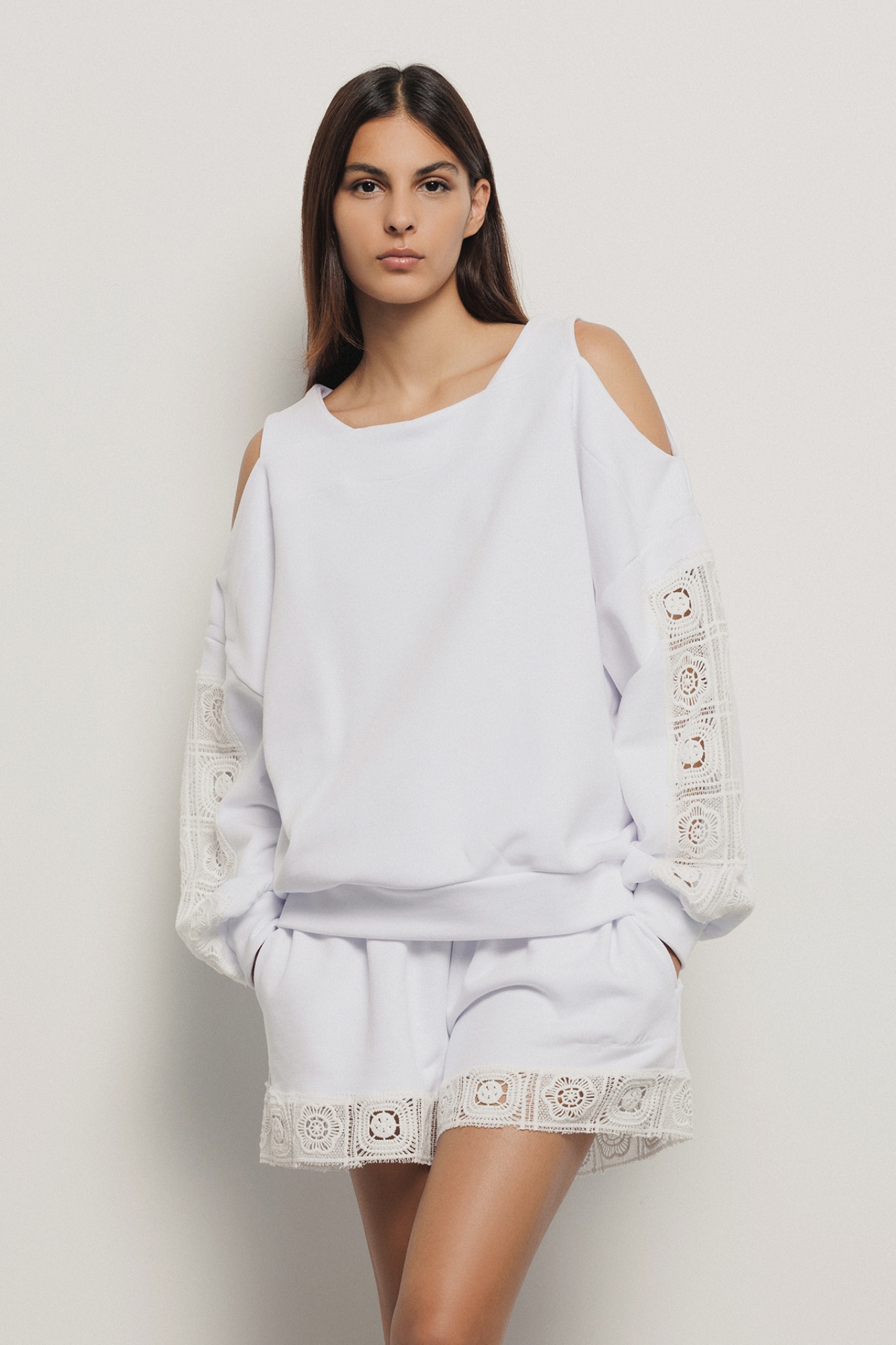 Felpa Crop Girocollo Over • Off White Felpa Crop Girocollo Over • Off White