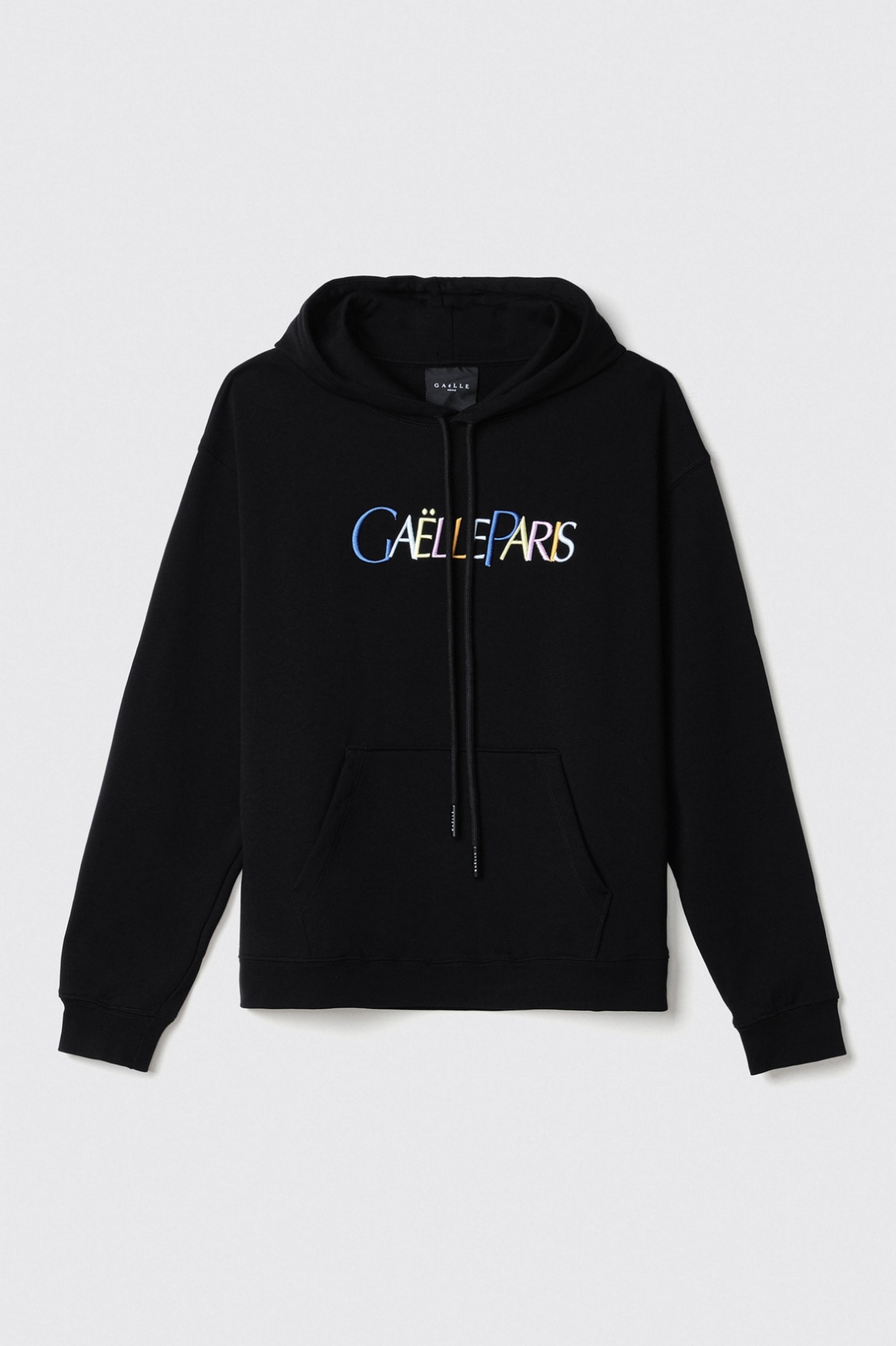 Felpa Cappuccio Con Marsupio Manica Lunga E Ricamo • Nero