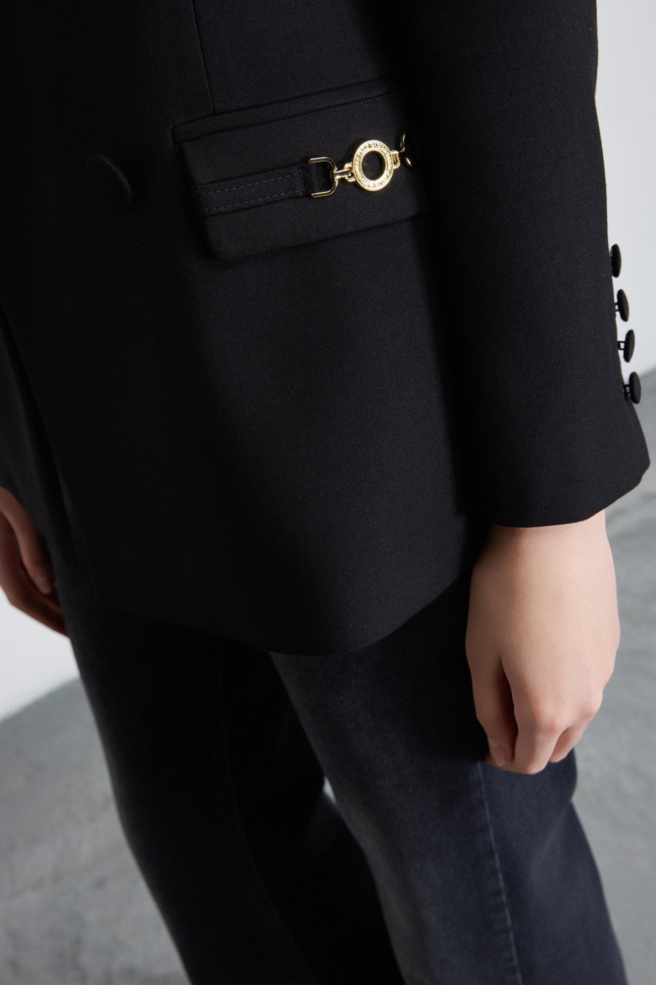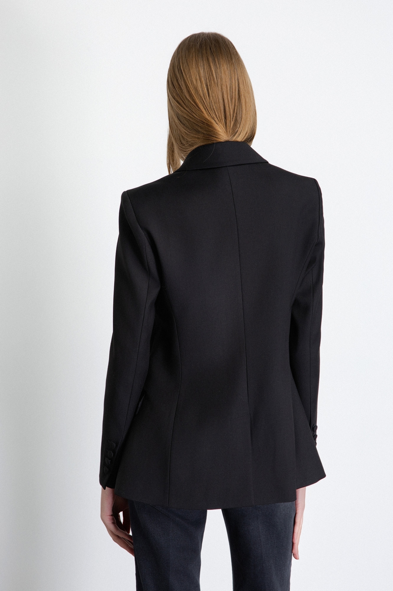 Giacca Doppiopetto Fittata In Frescolana Con Accessorio Morsetto