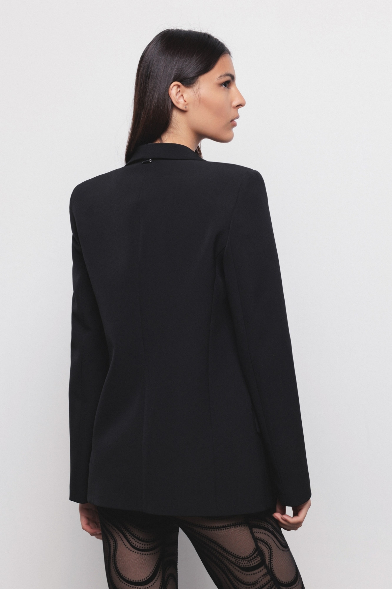 Giacca Monopetto In Cady Con Revers A Nastro In Raso