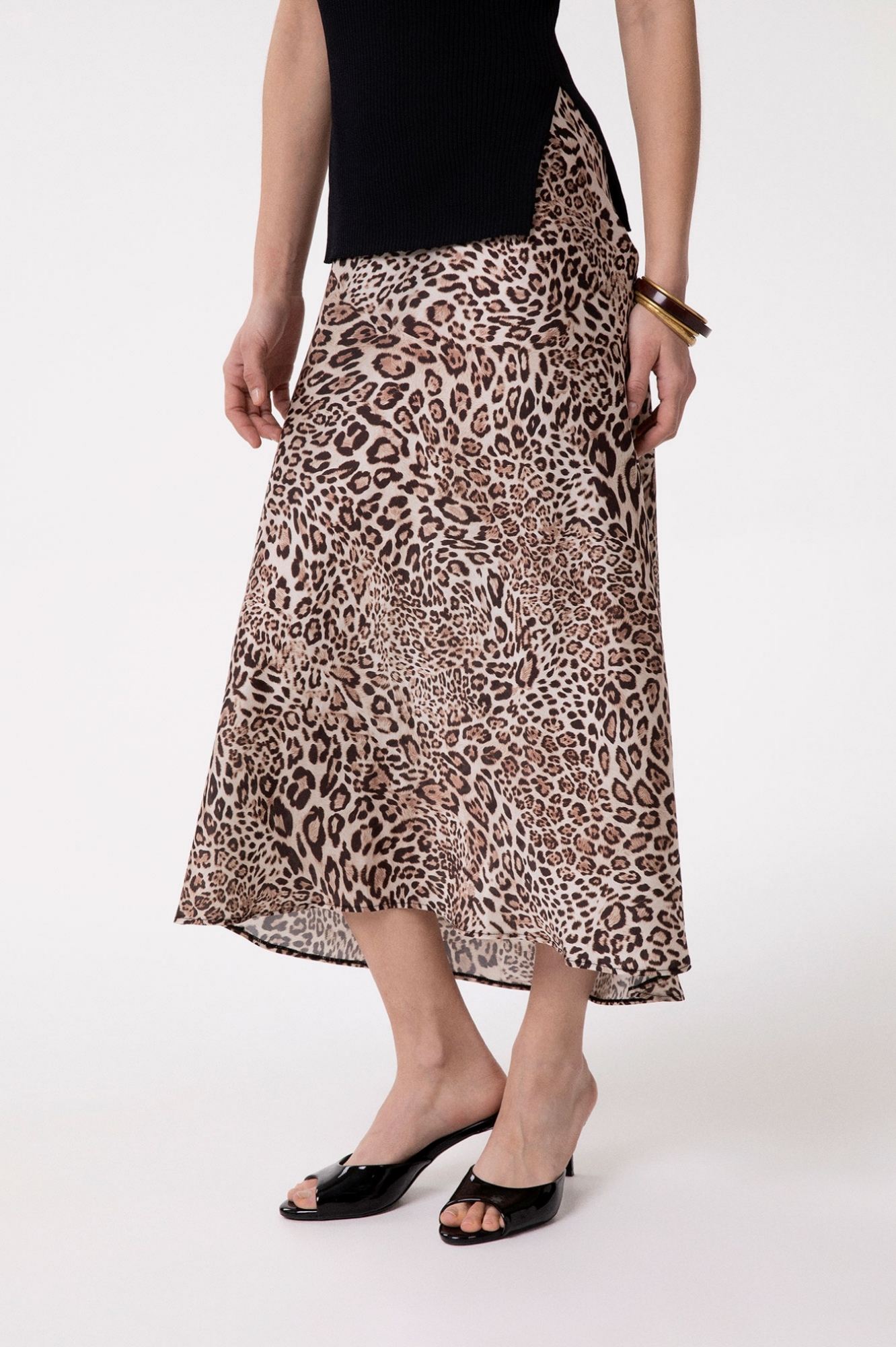 GONNA MIDI DRAPPEGGIATA IN RASO STAMPATO