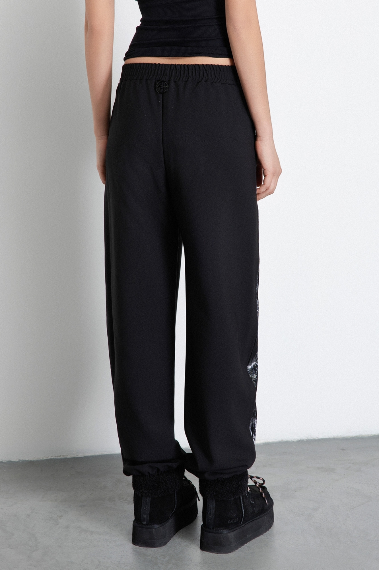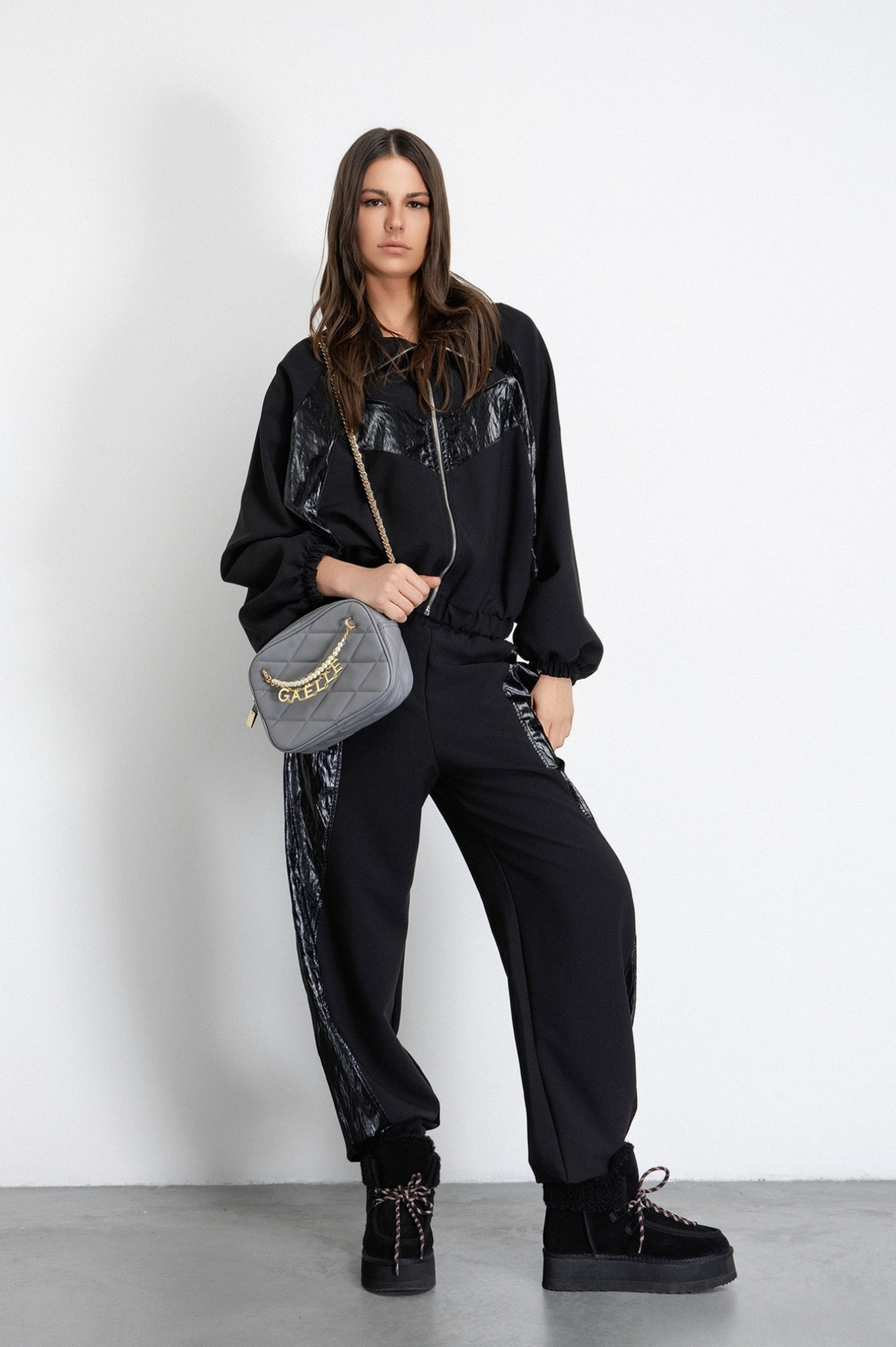 Pantalone Con Polsino In Crepe E Inserti In Tela Spalmata