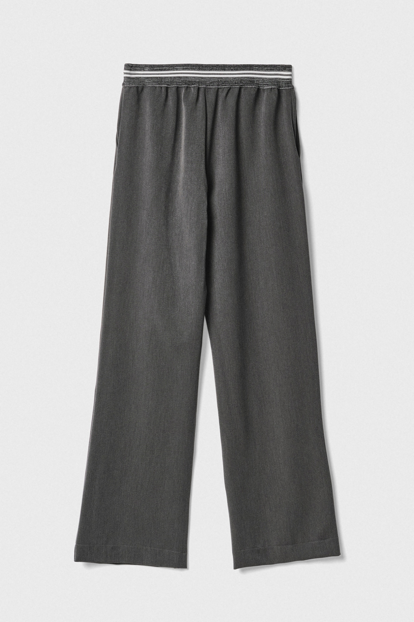 Pantalone Dritto Con Pieghe E Smacchinato In Vita
