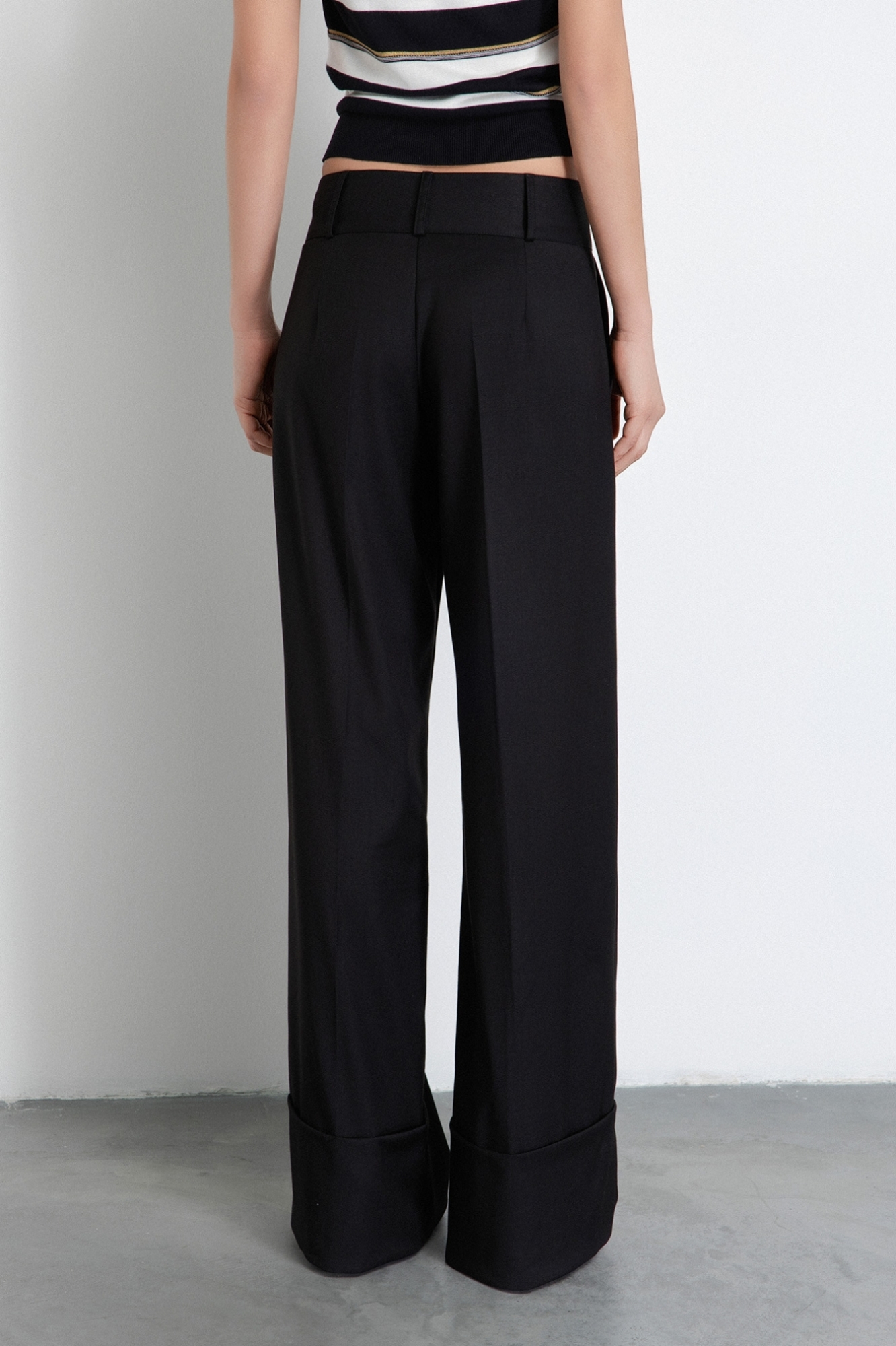 Pantalone Dritto Con Risvolto Su Fondo E Accessorio Morsetto Su Passante