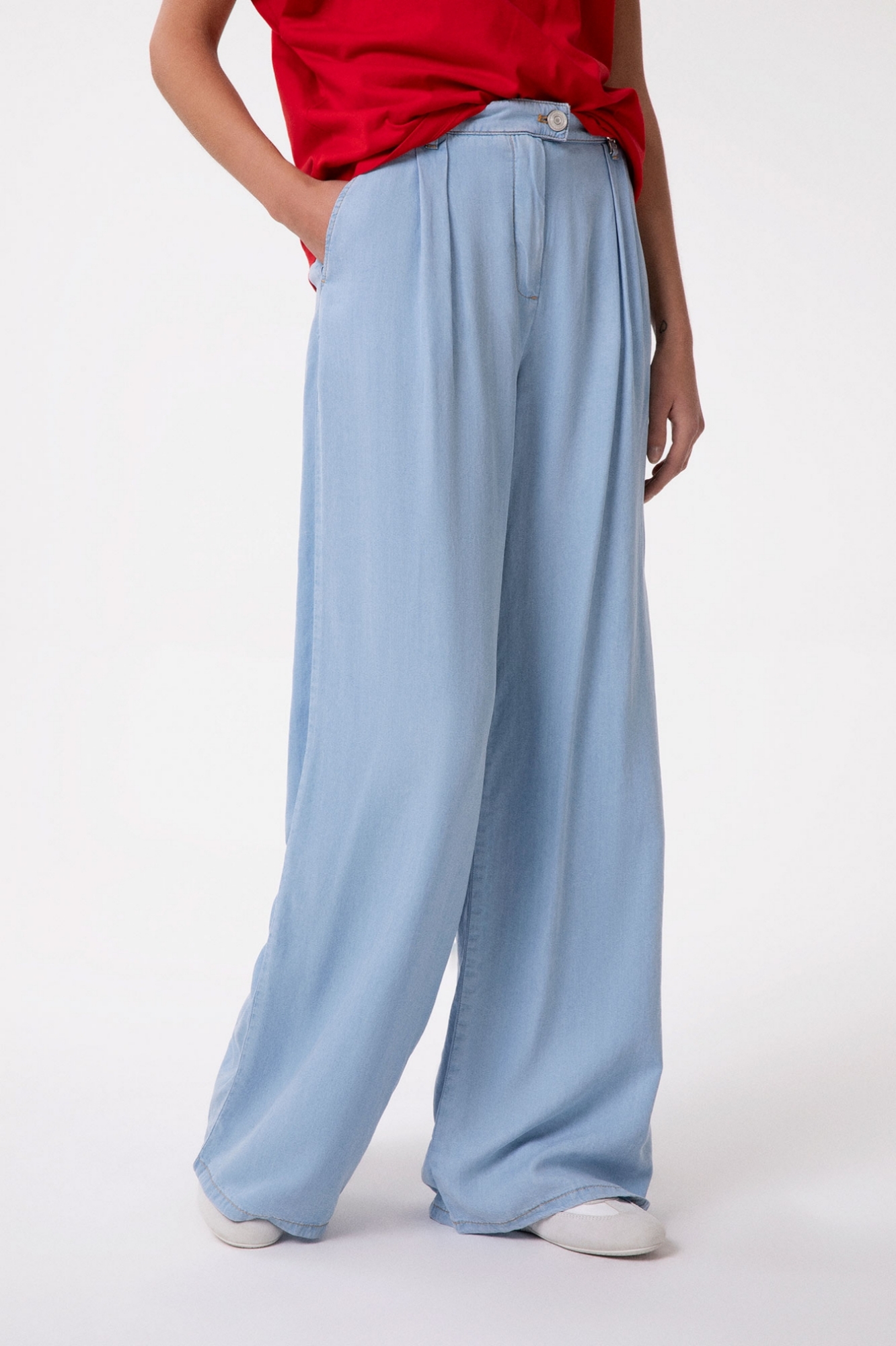 Pantalone In Denim Chino Doppia Pence Wide Leg