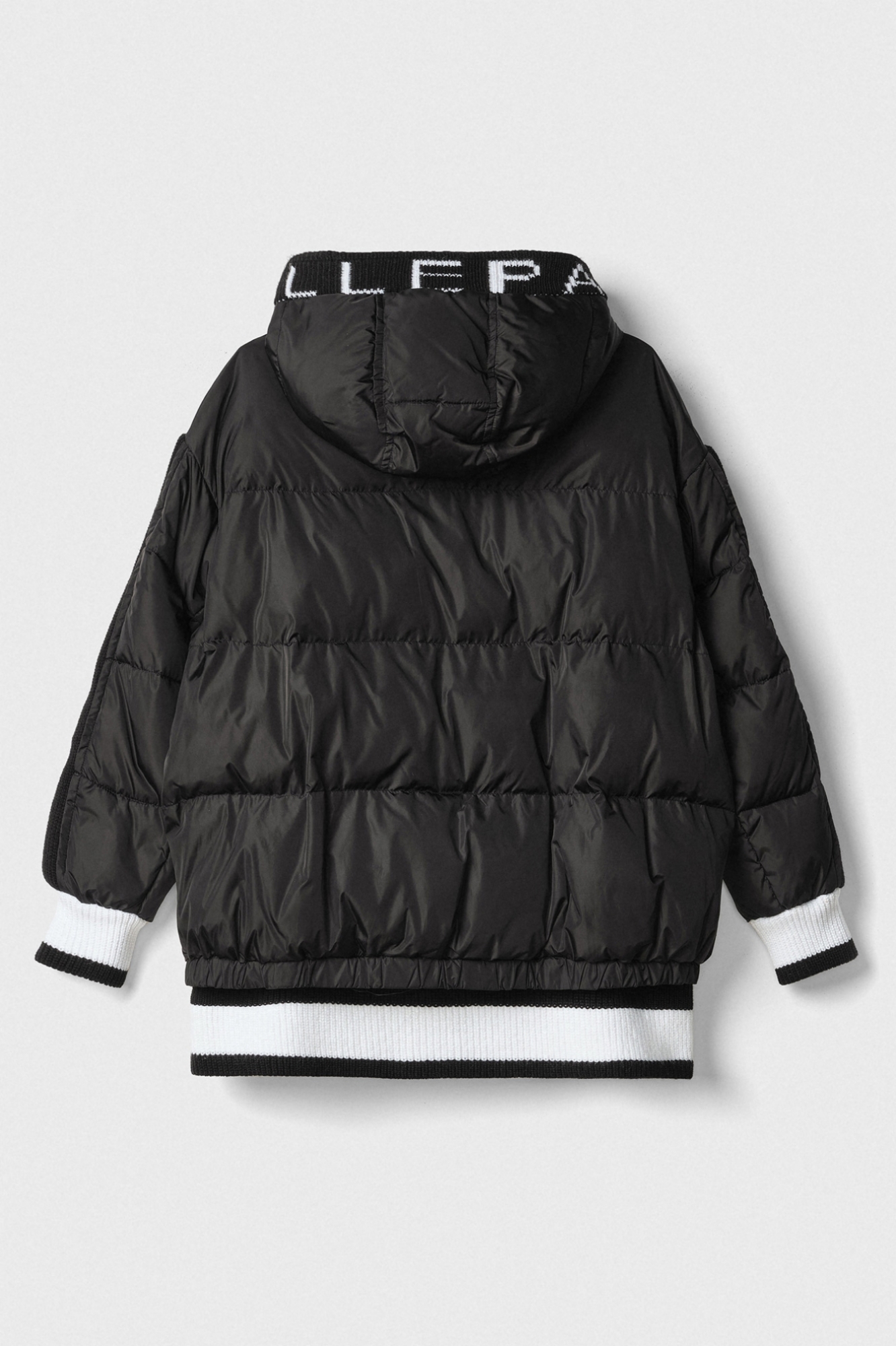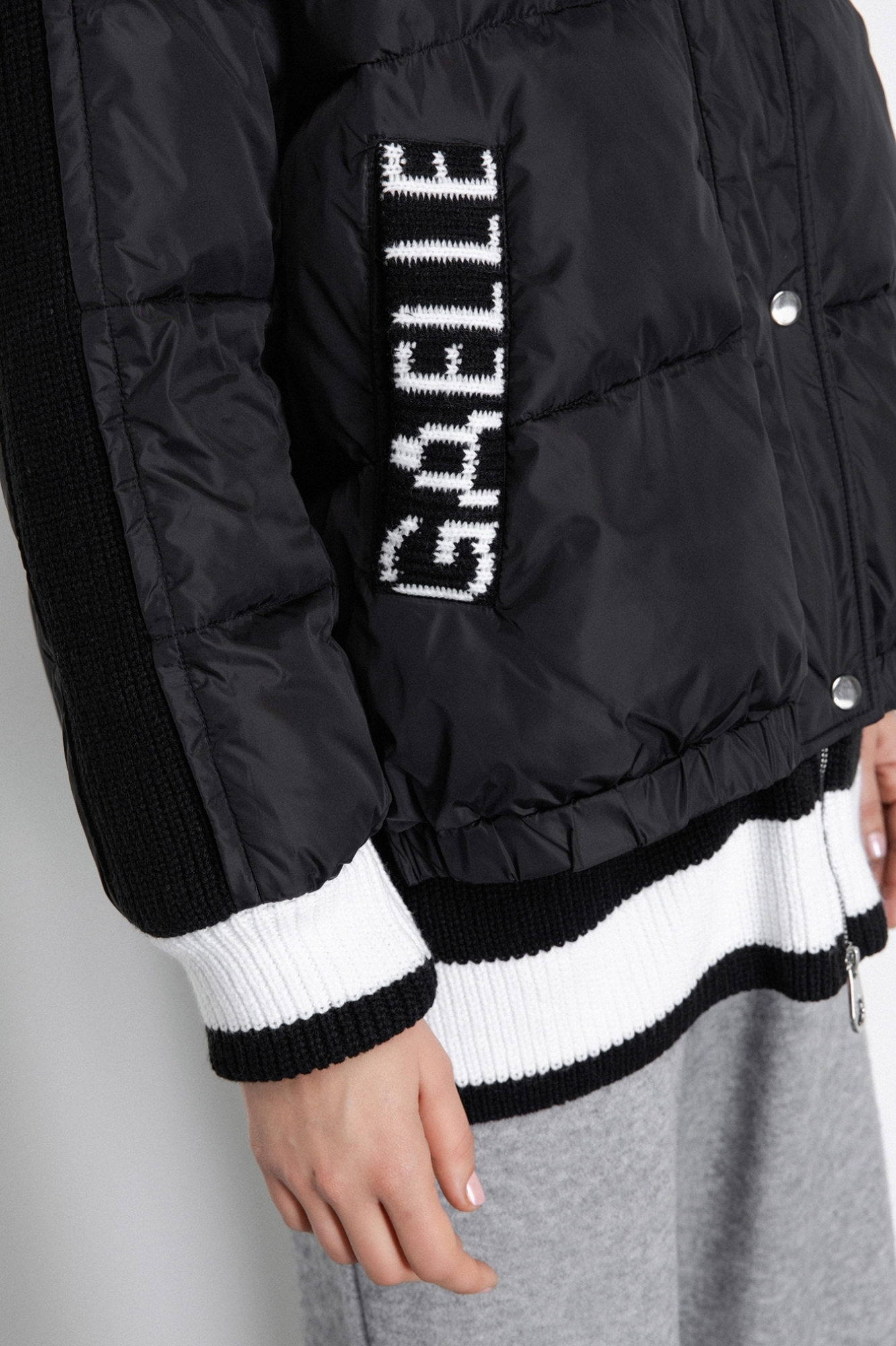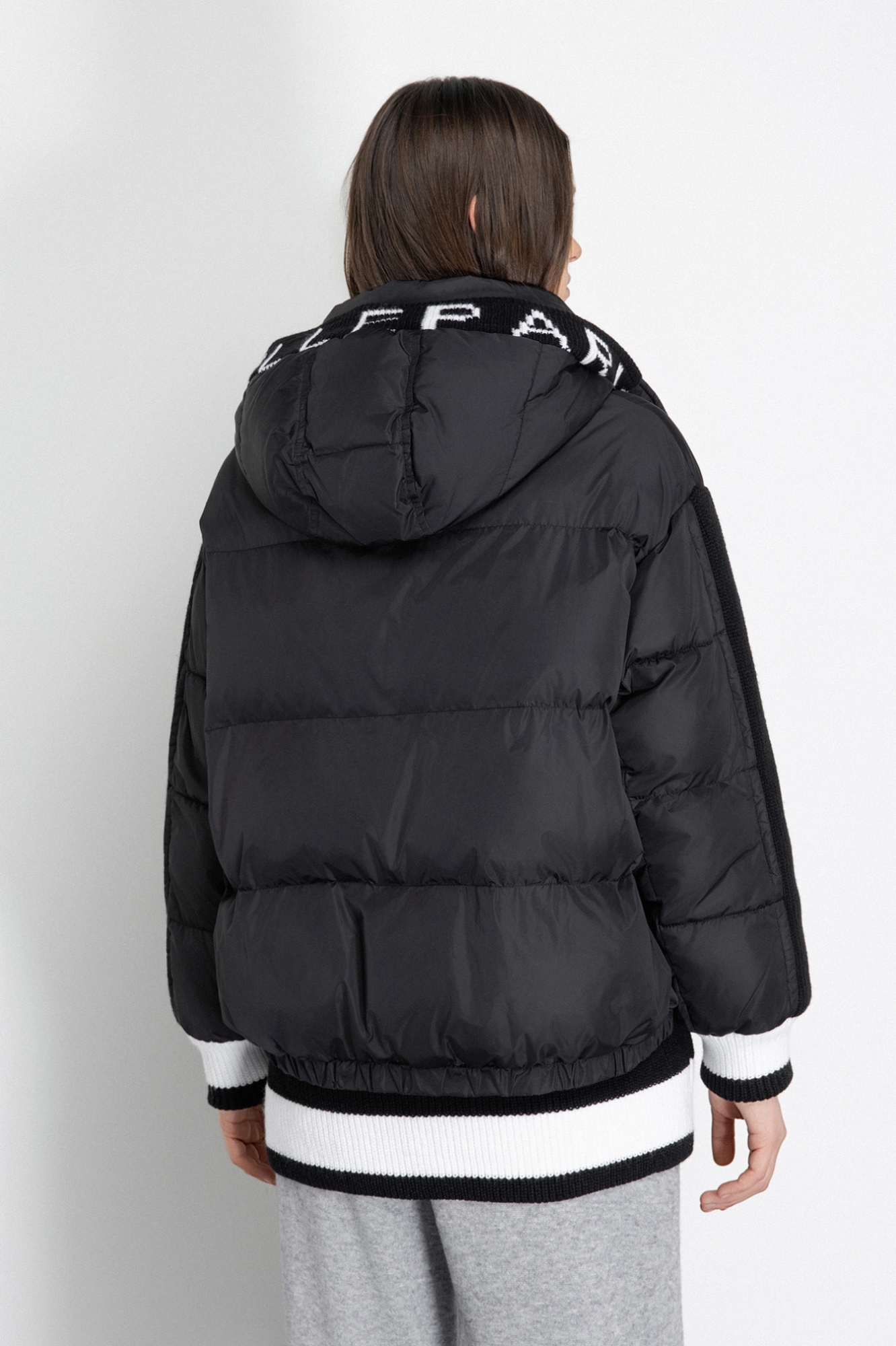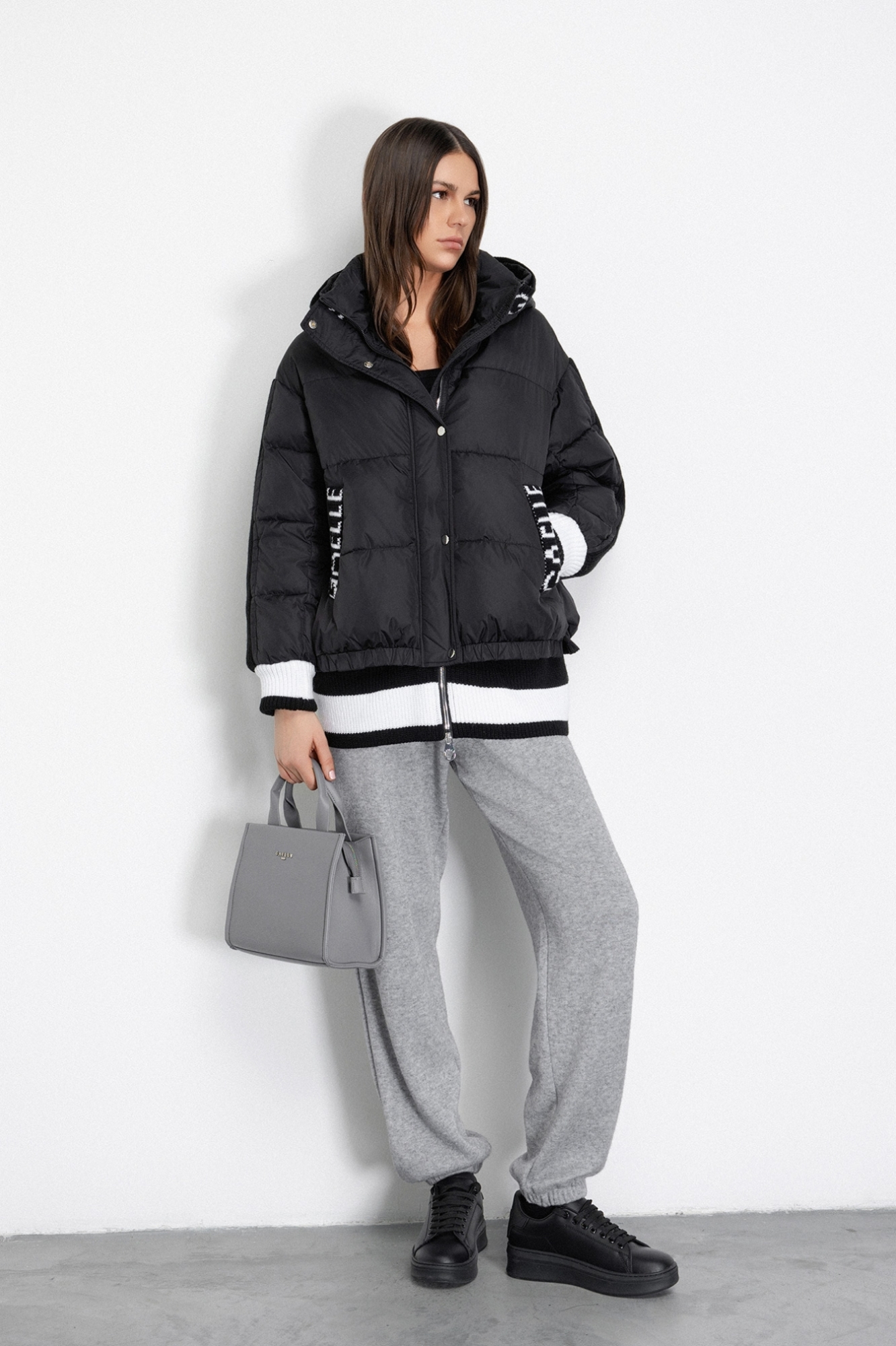 Piumino Manica Lunga Con Cappuccio Con Inserti In Maglieria