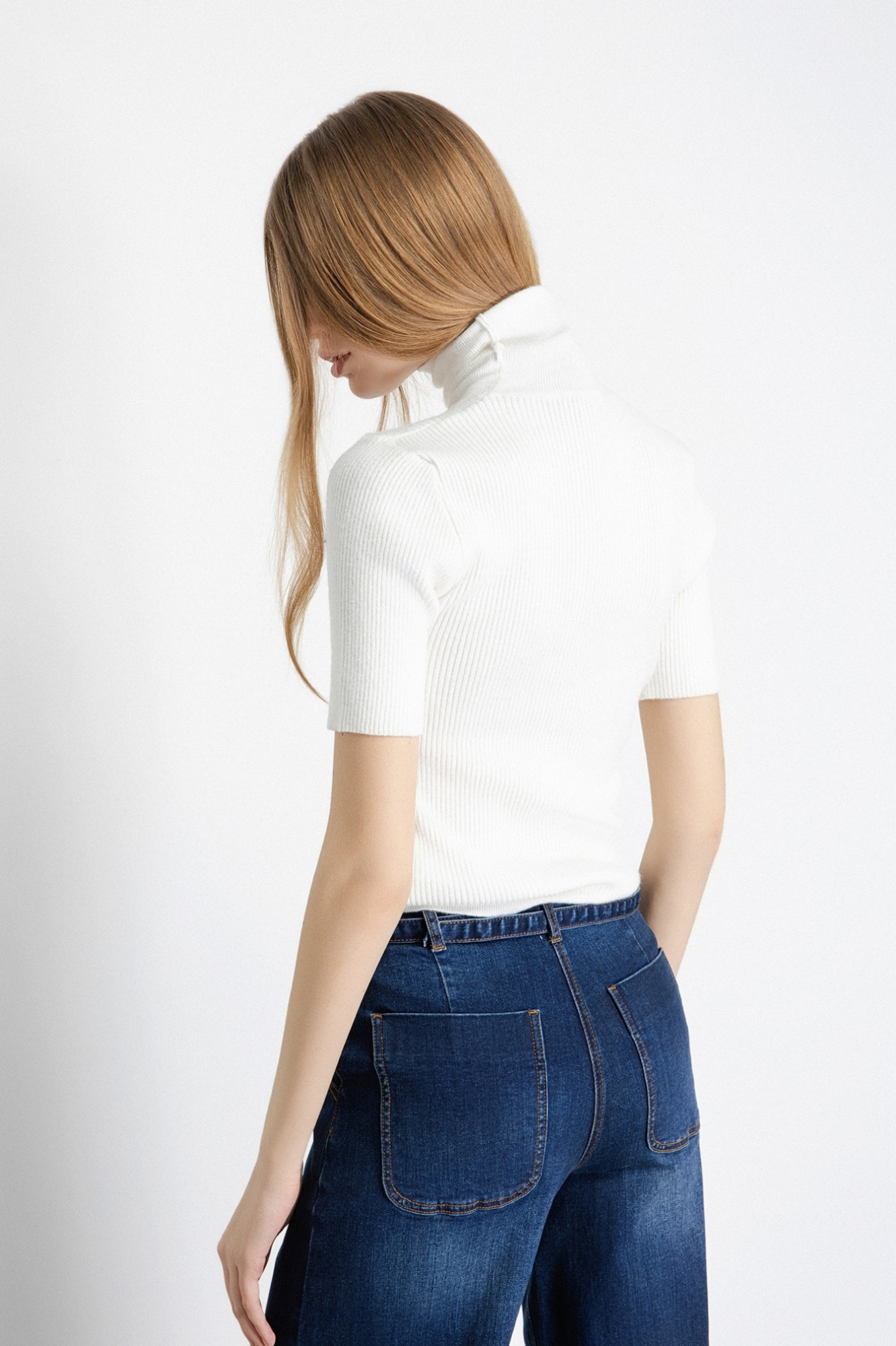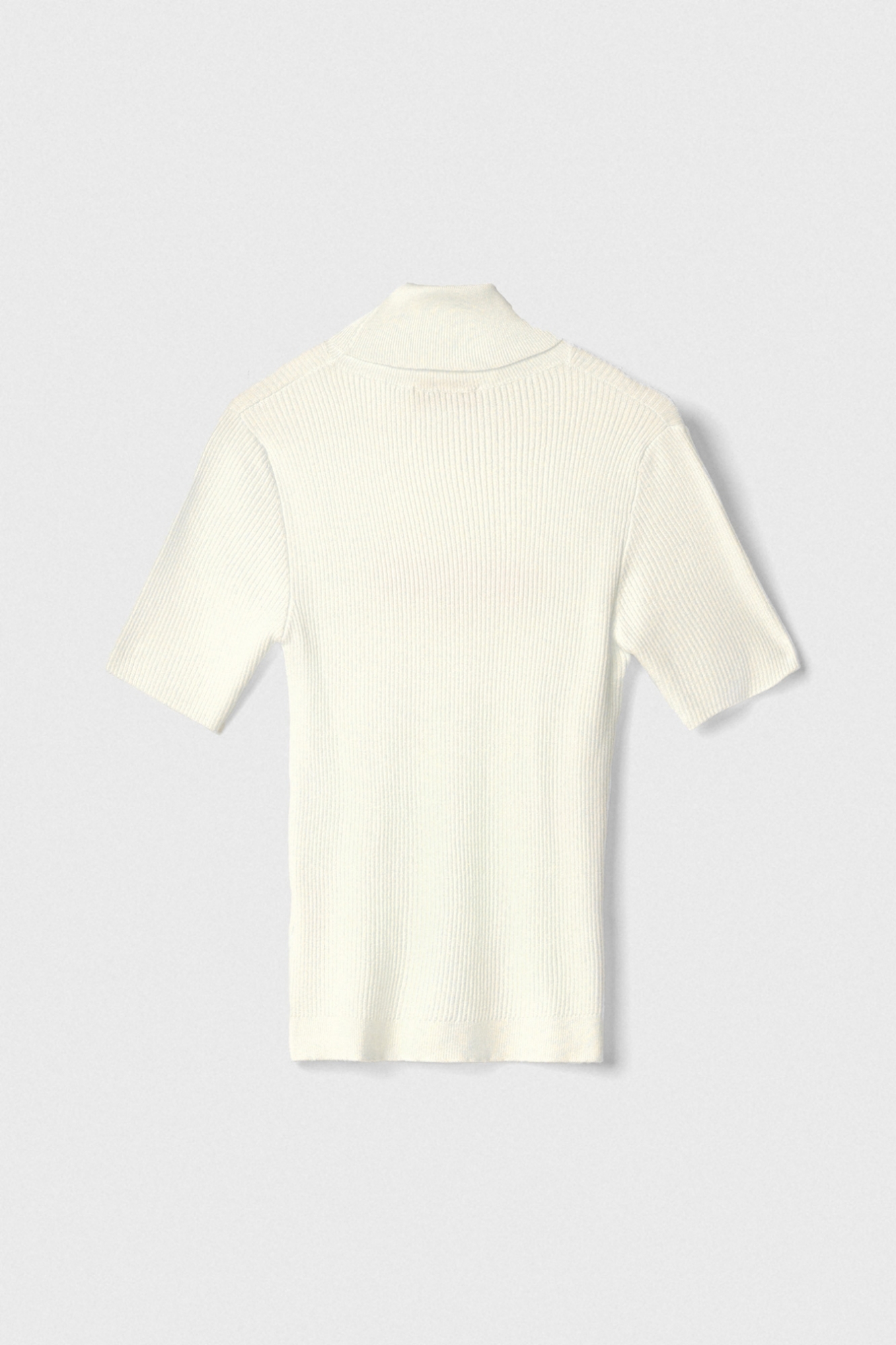 Pullover Paricollo In Maglia A Coste Mezza Manica