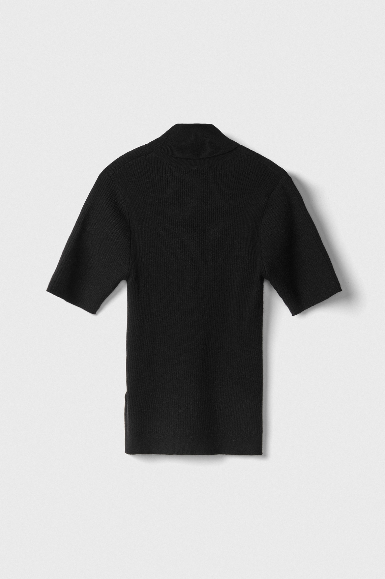 Pullover Paricollo In Maglia A Coste Mezza Manica