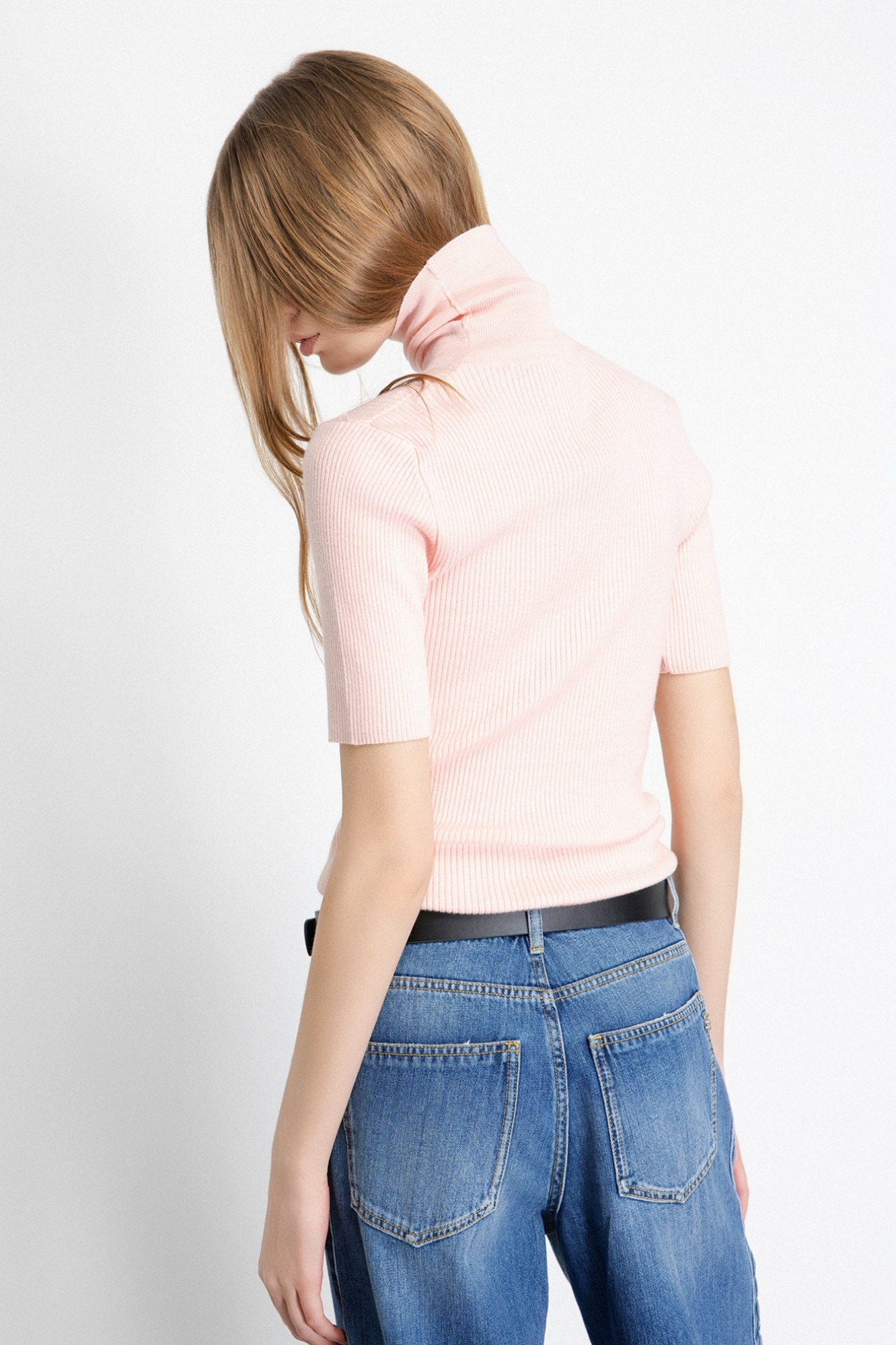 Pullover Paricollo In Maglia A Coste Mezza Manica
