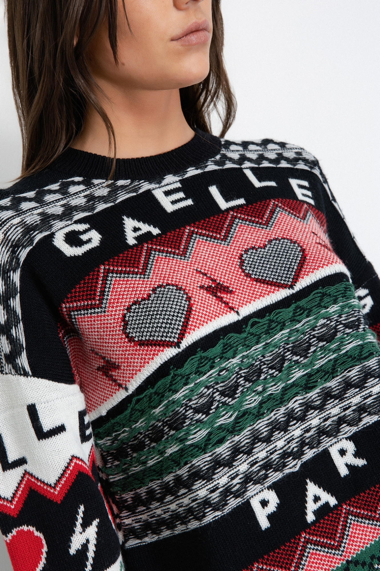 Pullover Paricollo In Maglieria Con Lavorazione Logo