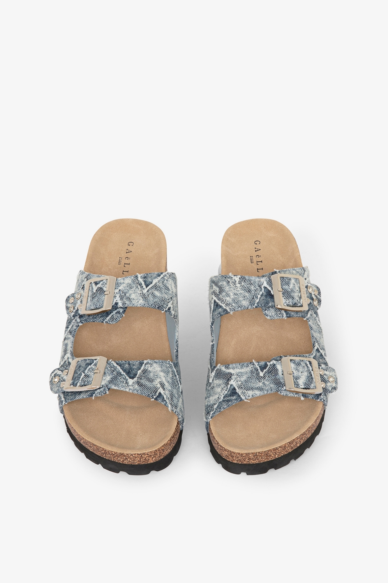 Sandalo In Denim Con Rivetto Personalizzato E Doppia Fibbia