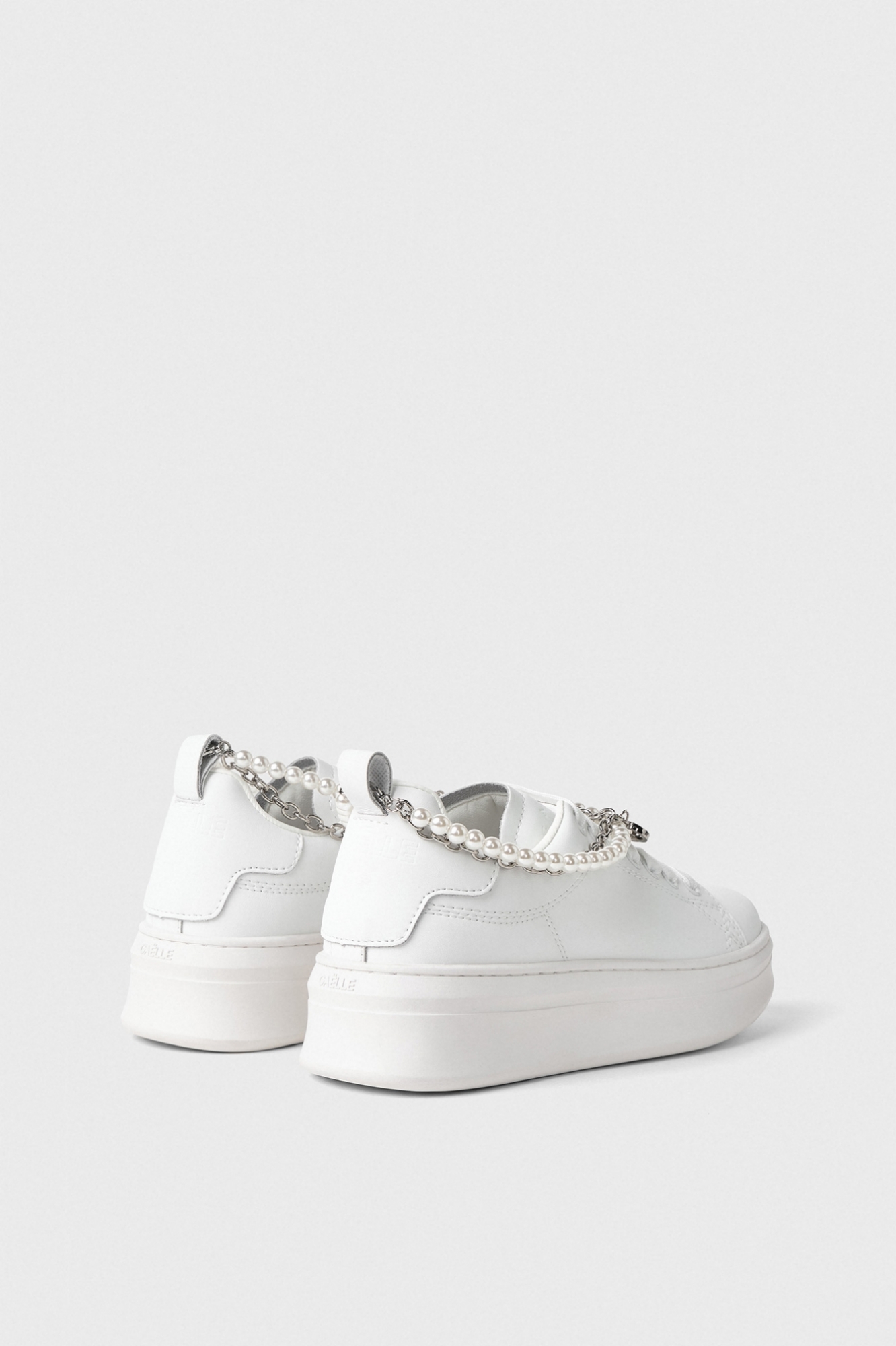 Sneakers Addict In Action Leather Con Catena Al Polso Perle E Logo In Metallo