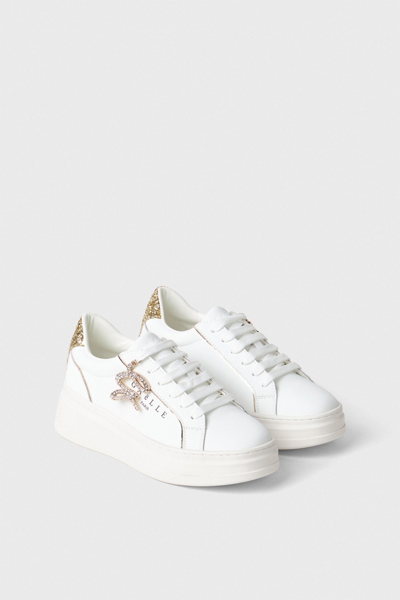 Sneakers New Addict In Action Leather Con Charms In Strass E Applicazione Glitter