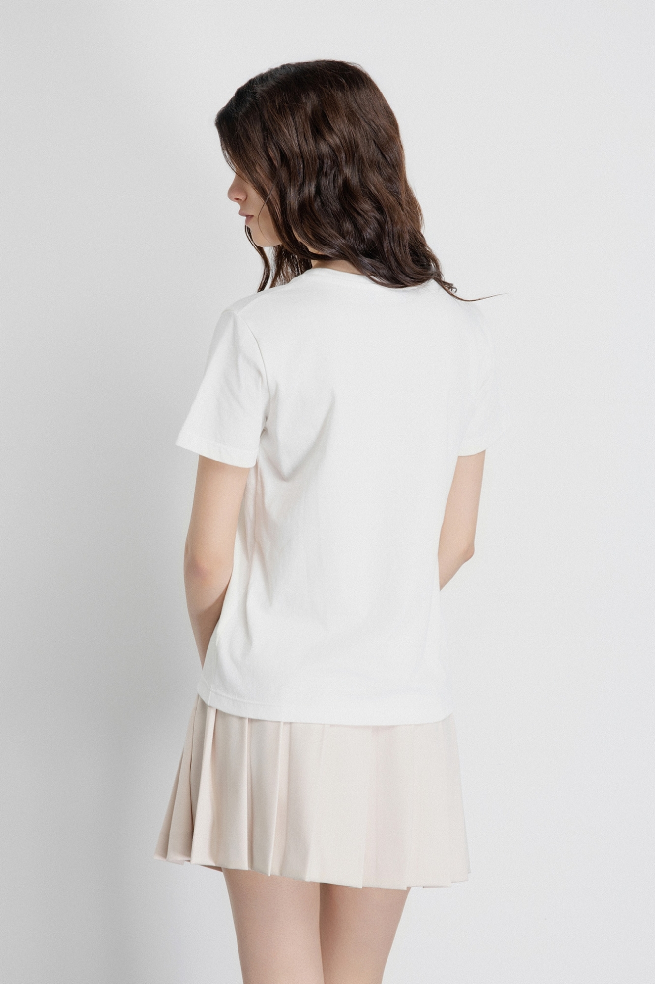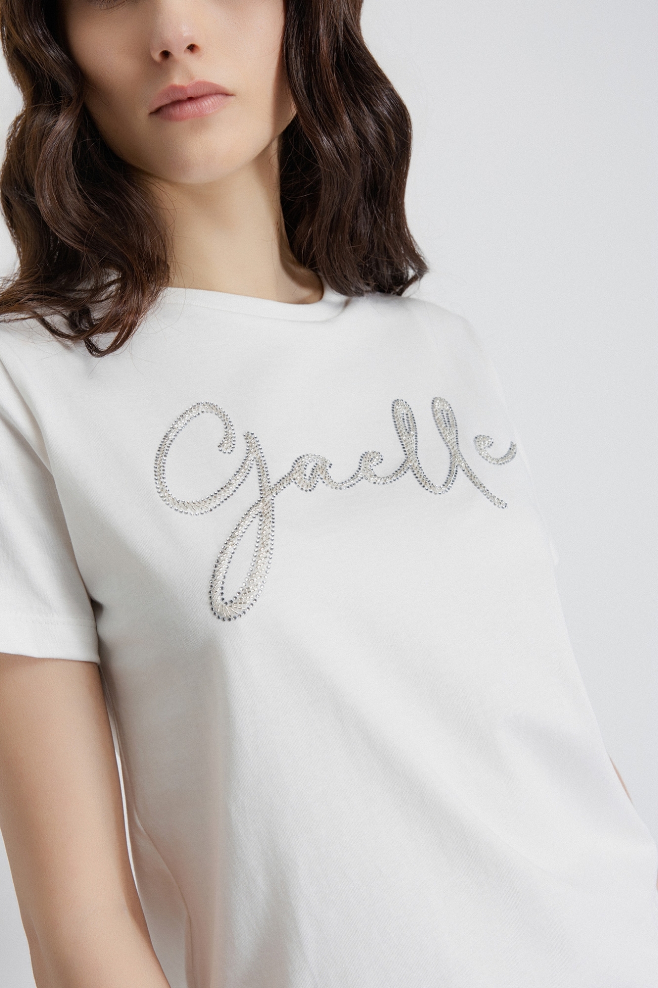 T-Shirt Paricollo Mezza Manica Con Logo Ricamato A Mano E Strass Termo
